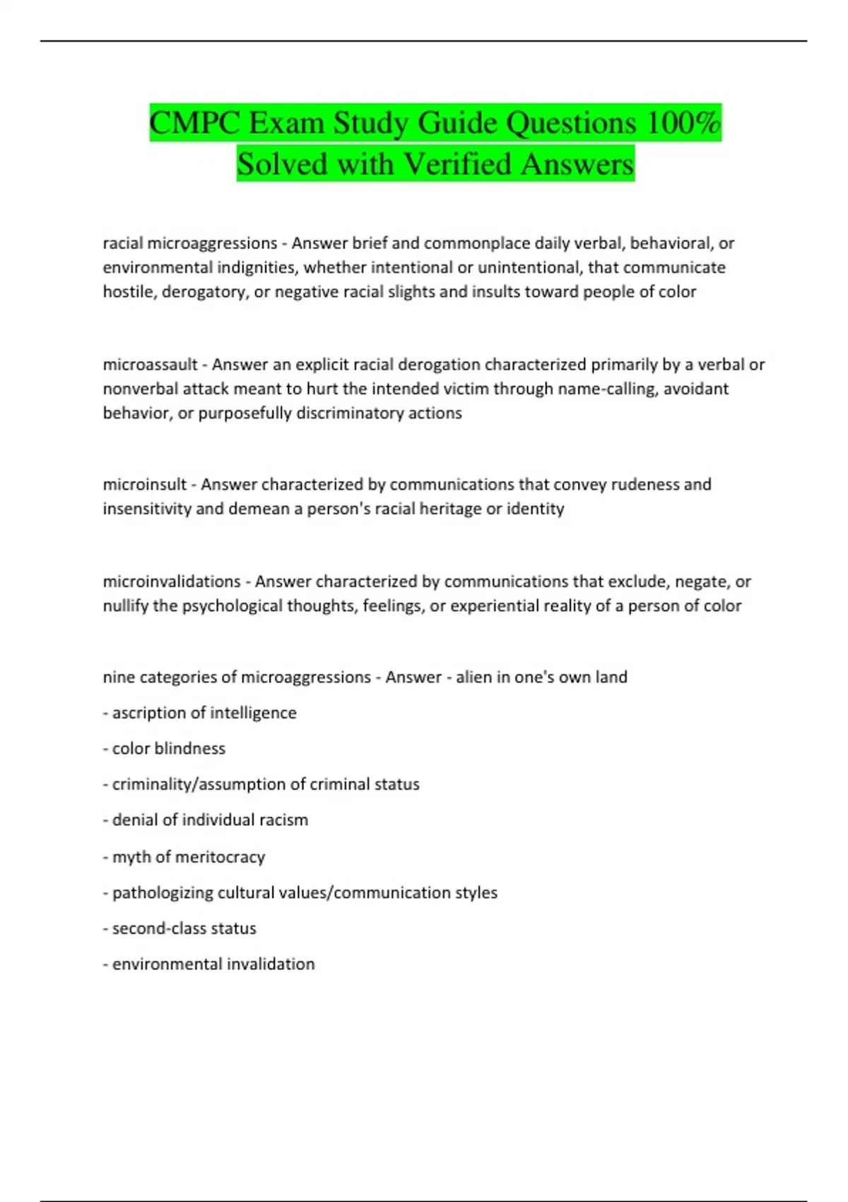 nine categories of microaggressions - Answer - alien in one's own land