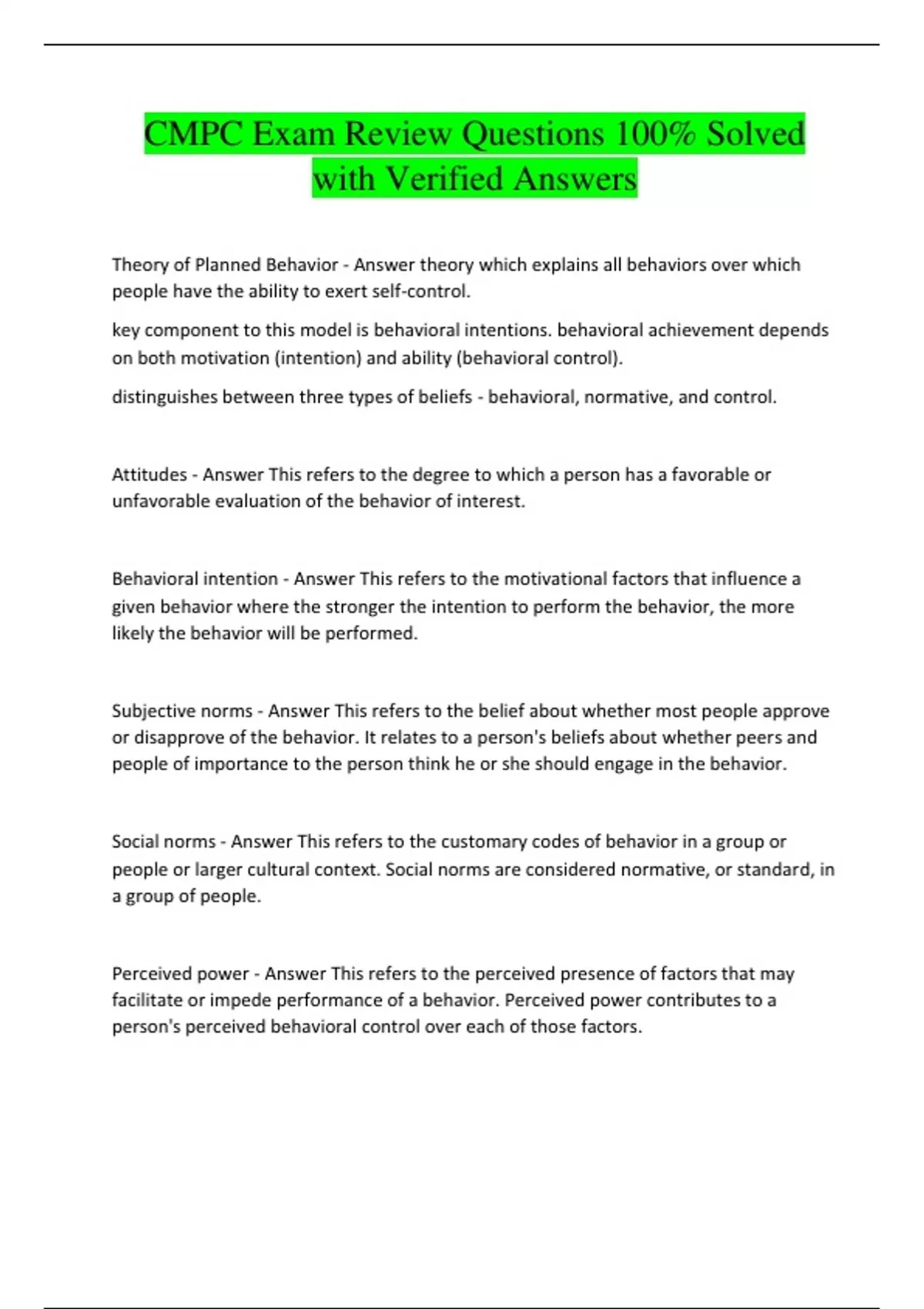 CMPC Exam Review Questions 100% Solved with Verified Answers