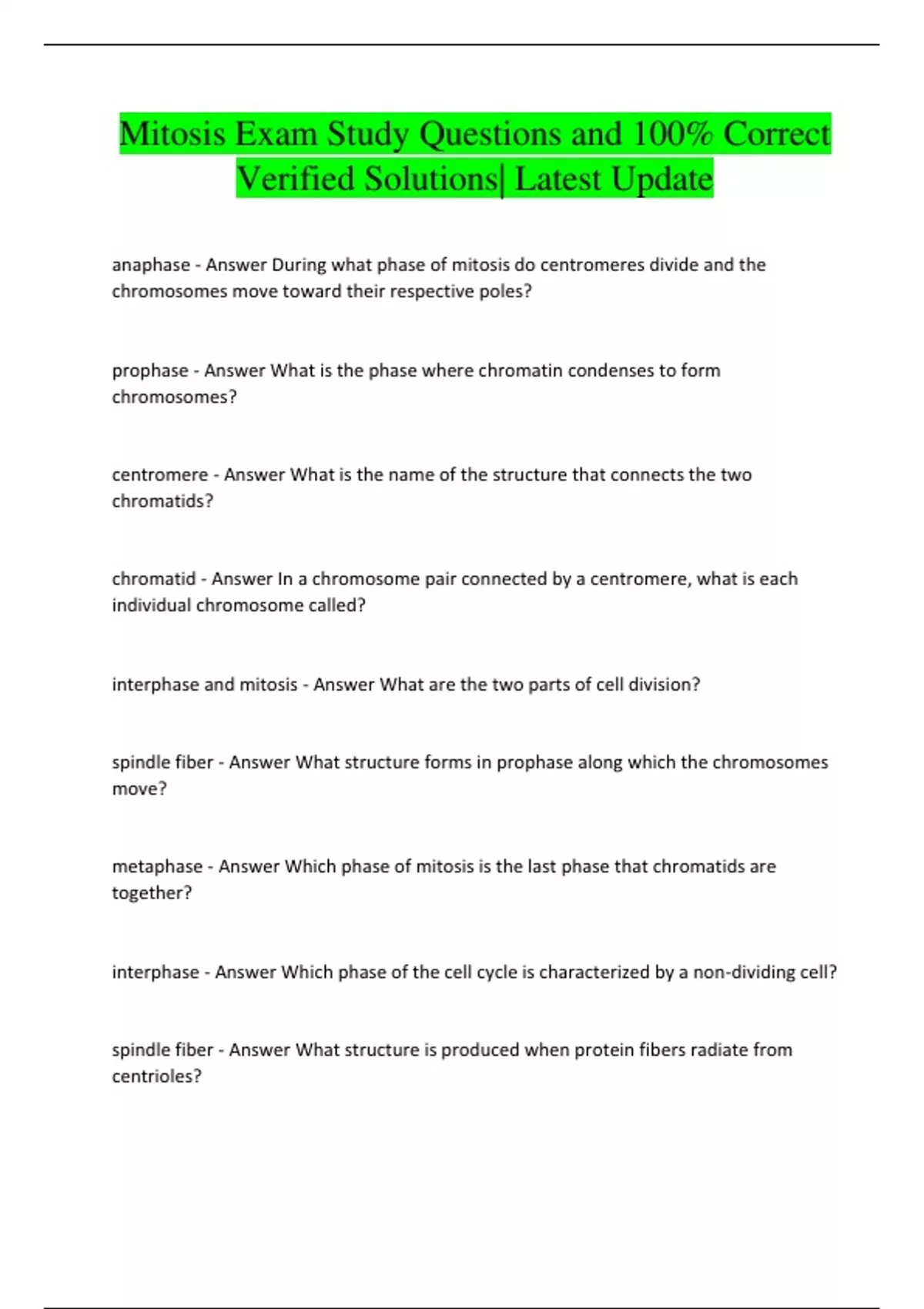 metaphase - Answer Which phase of mitosis is the last phase that chromatids are