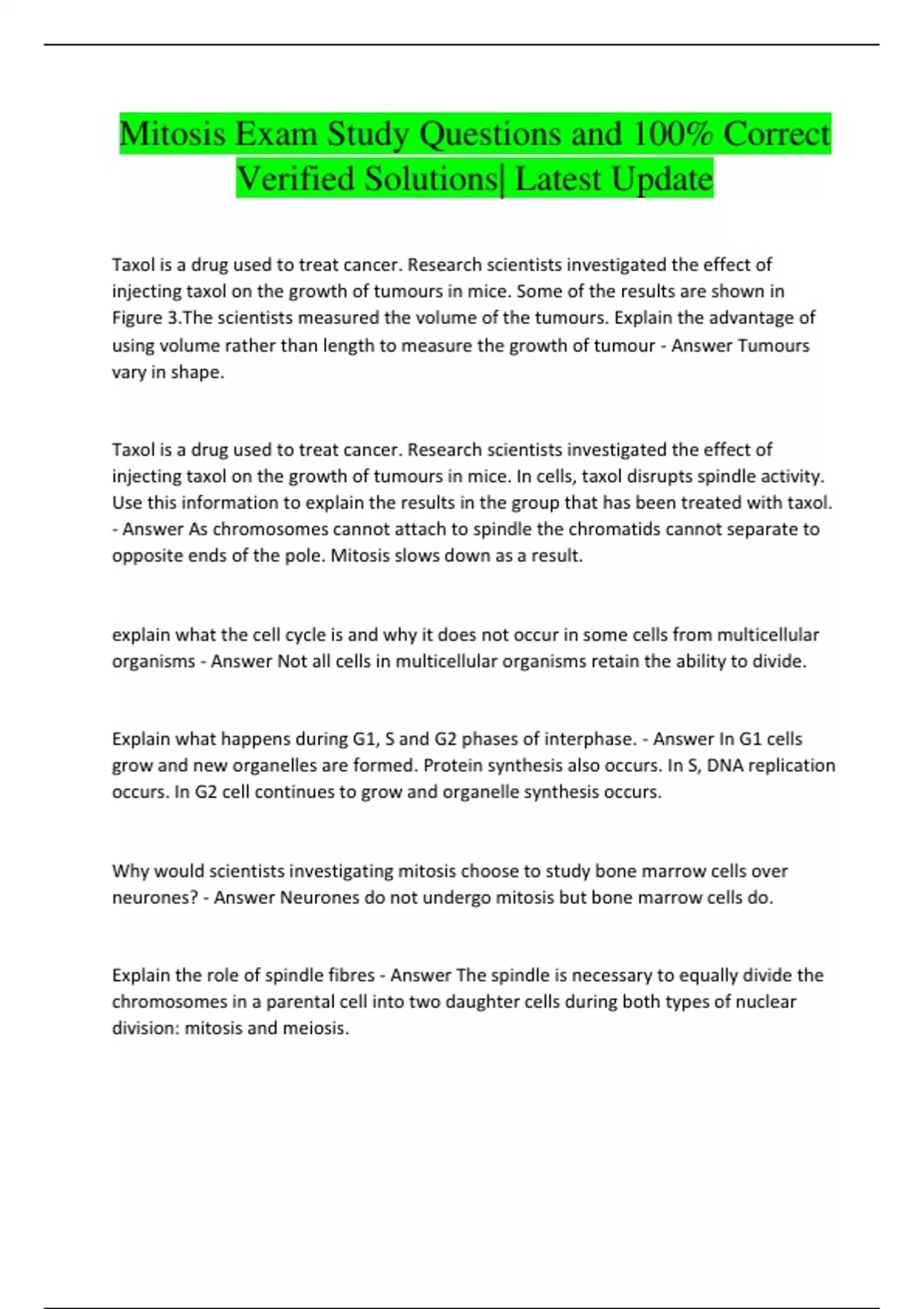 Explain the role of spindle fibres - Answer The spindle is necessary to equally divide the