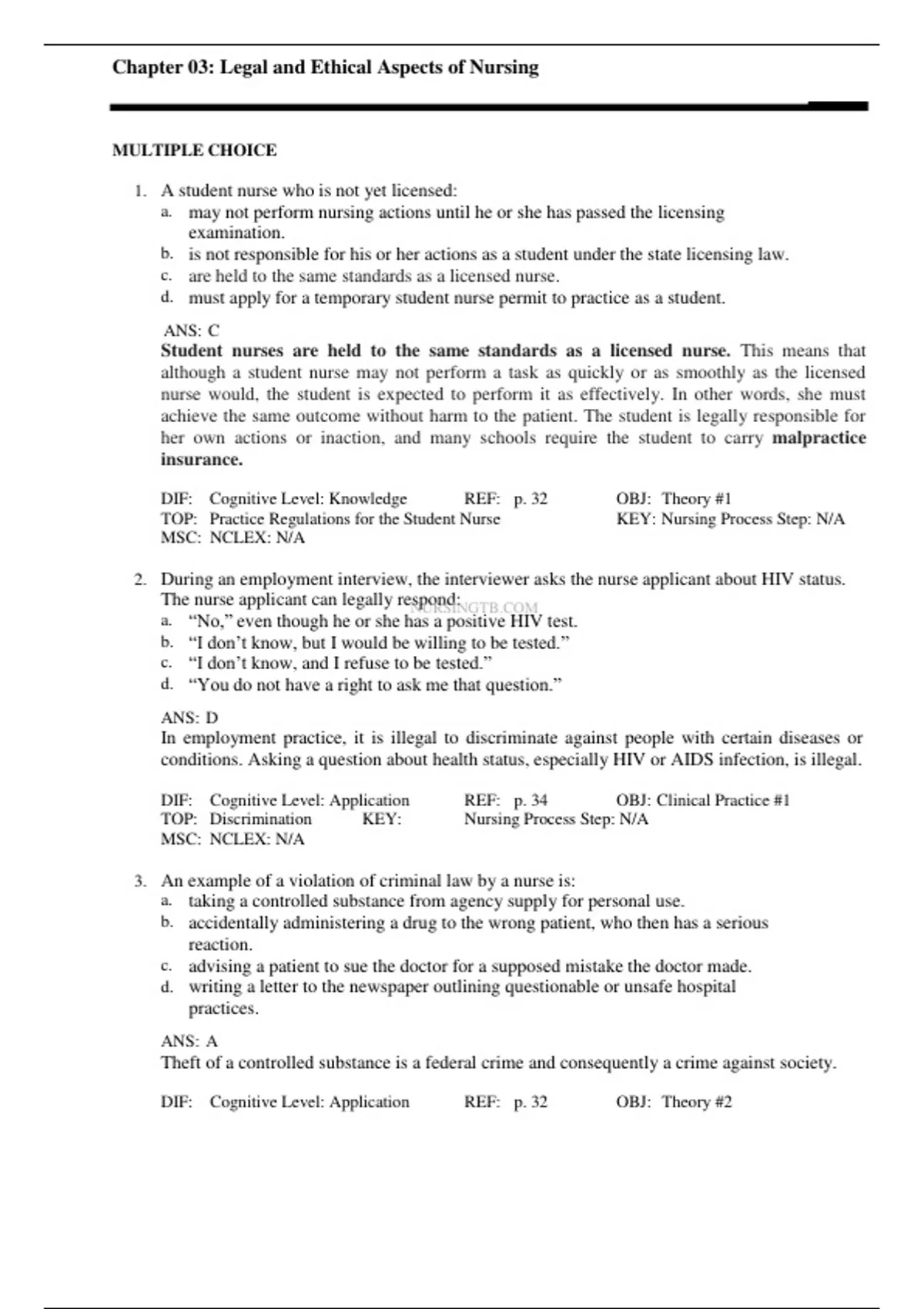 Chapter 03: Legal and Ethical Aspects of Nursing