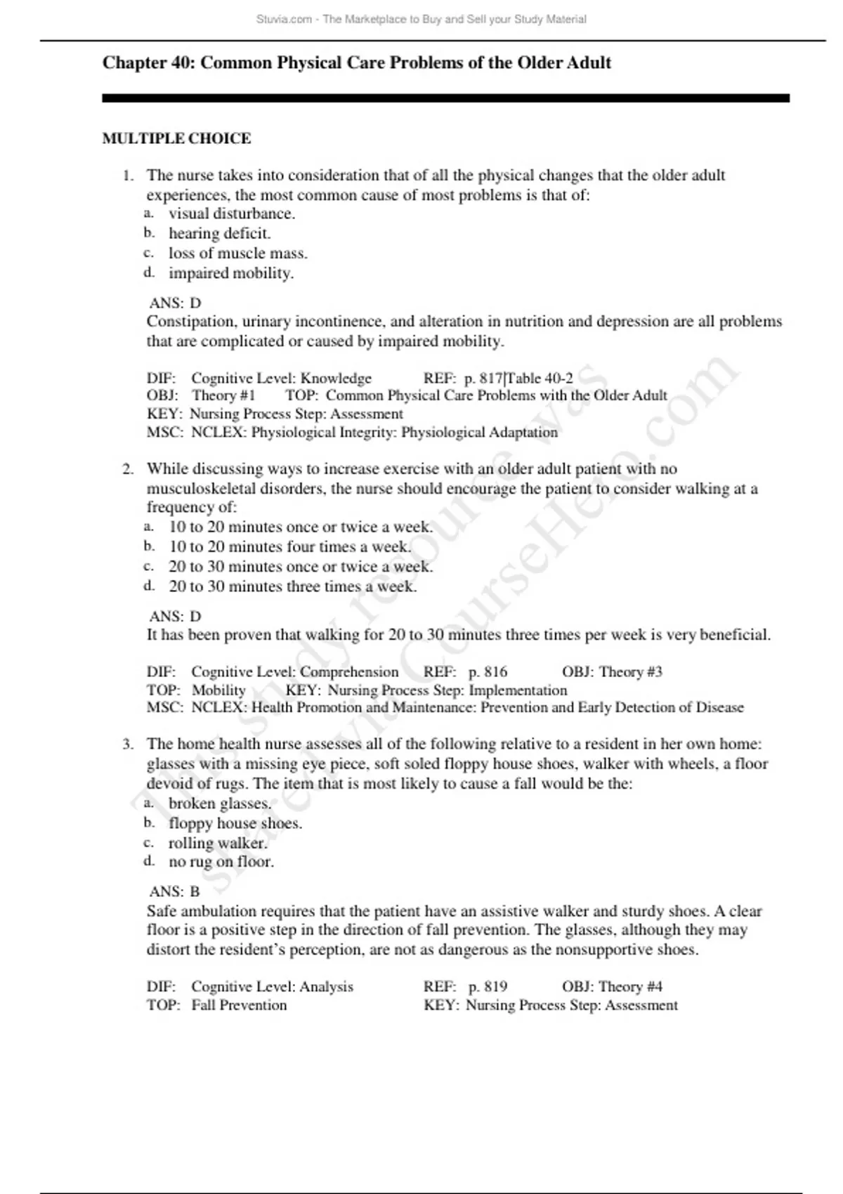 OBJ: Theory #1 TOP: Common Physical Care Problems with the Older Adult