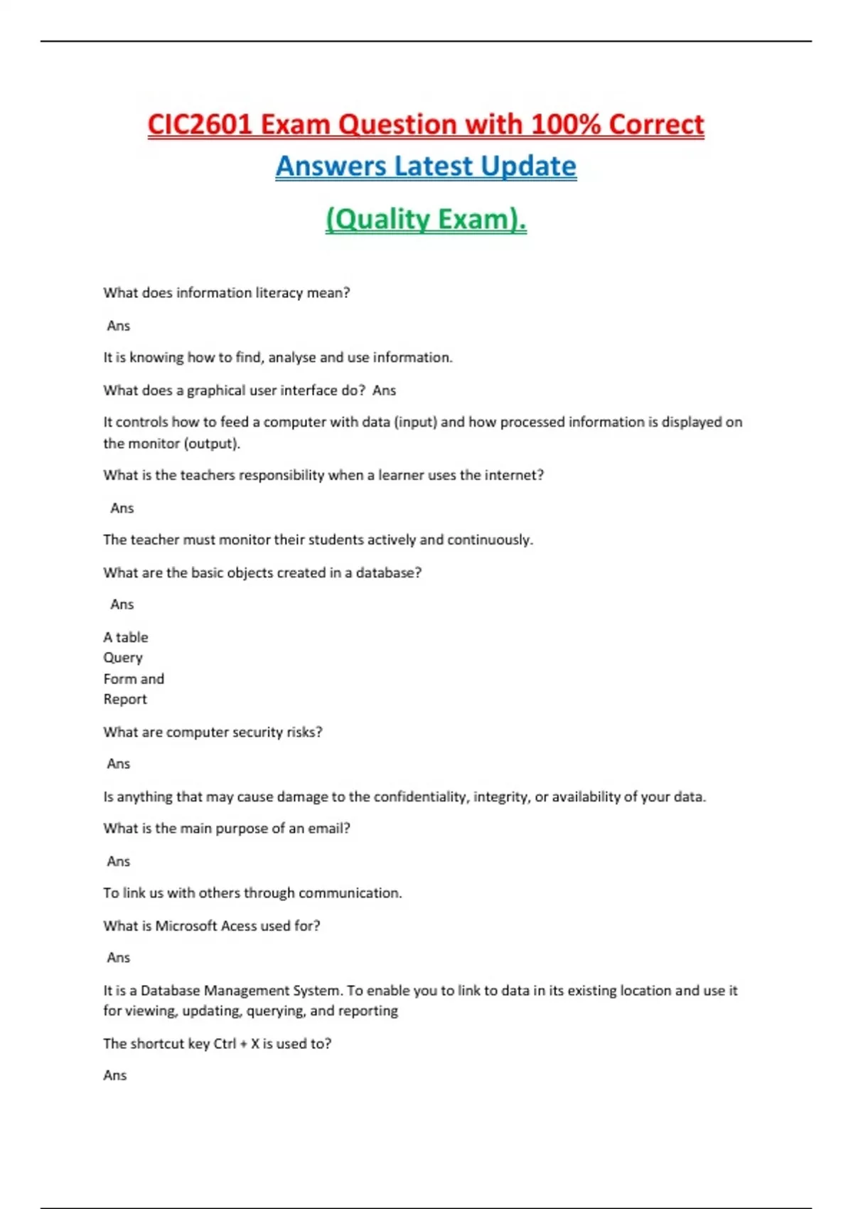 CIC2601 Exam Question with 100% Correct Answers Latest Update (Quality Exam).