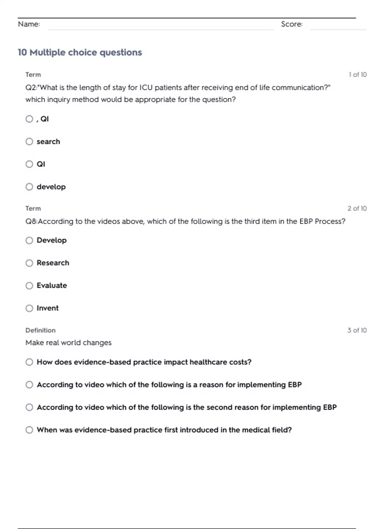 10 Multiple choice questions