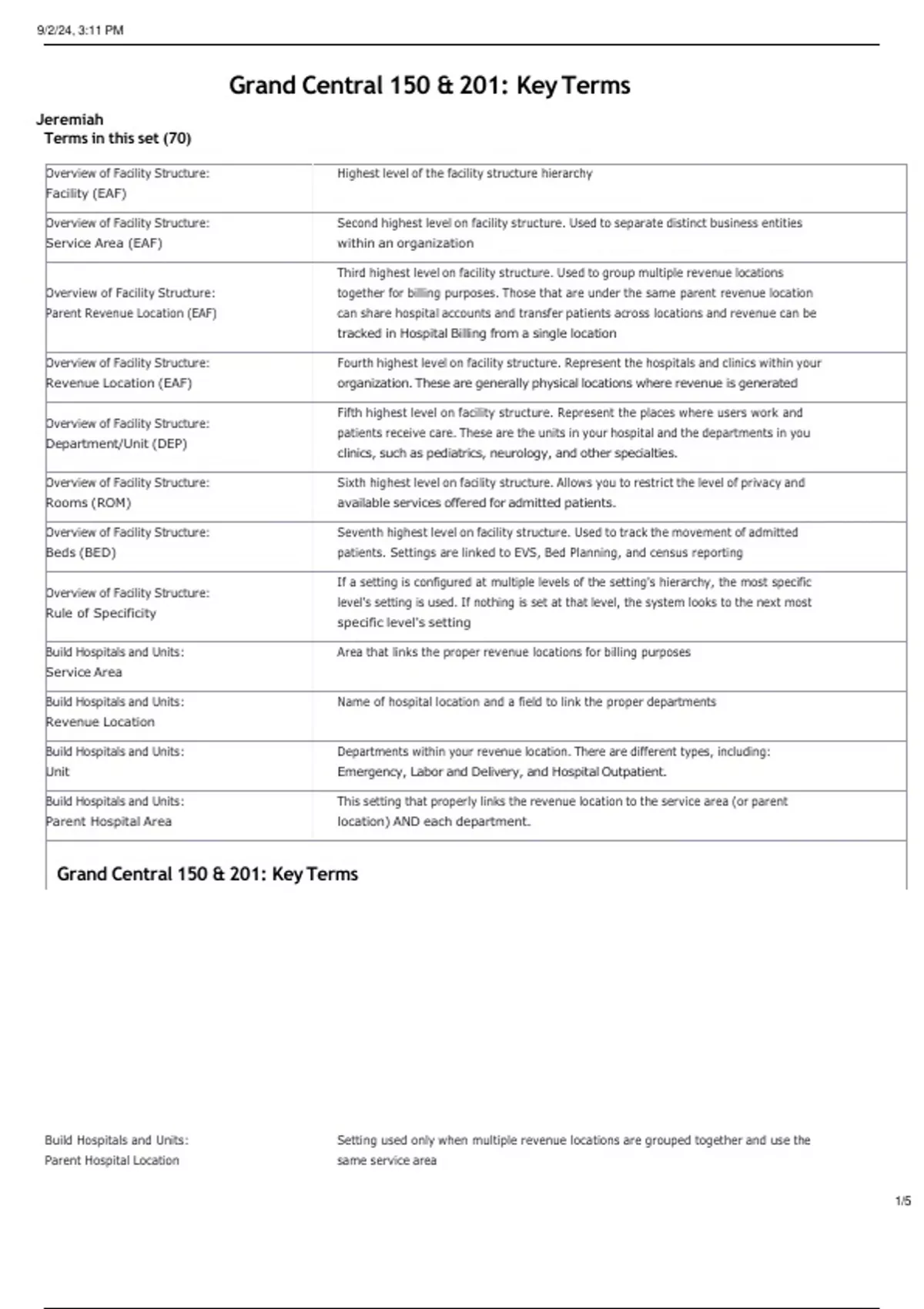 Overview of Facility Structure: together for billing purposes. Those that are under the same parent revenue location