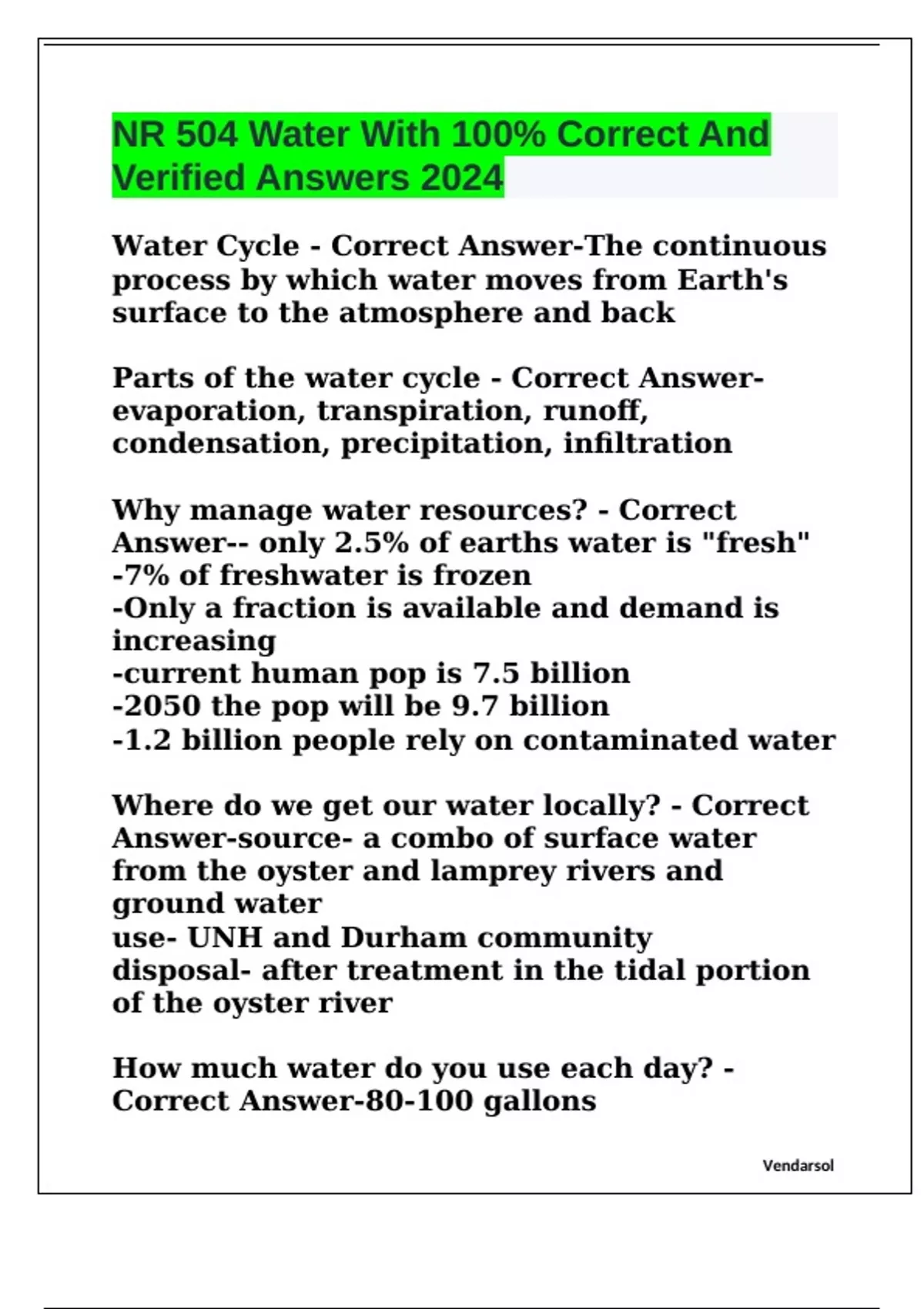 NR 504 Water With 100% Correct And Verified Answers 2024