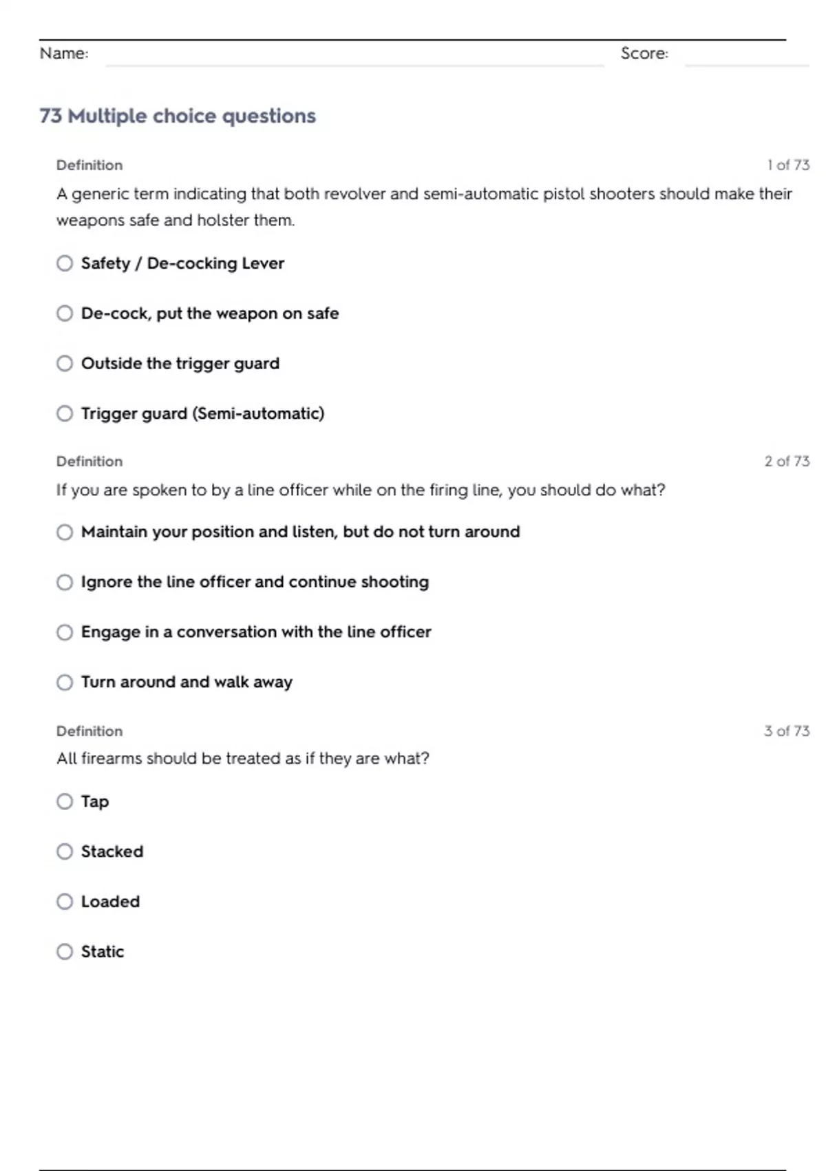 73 Multiple choice questions