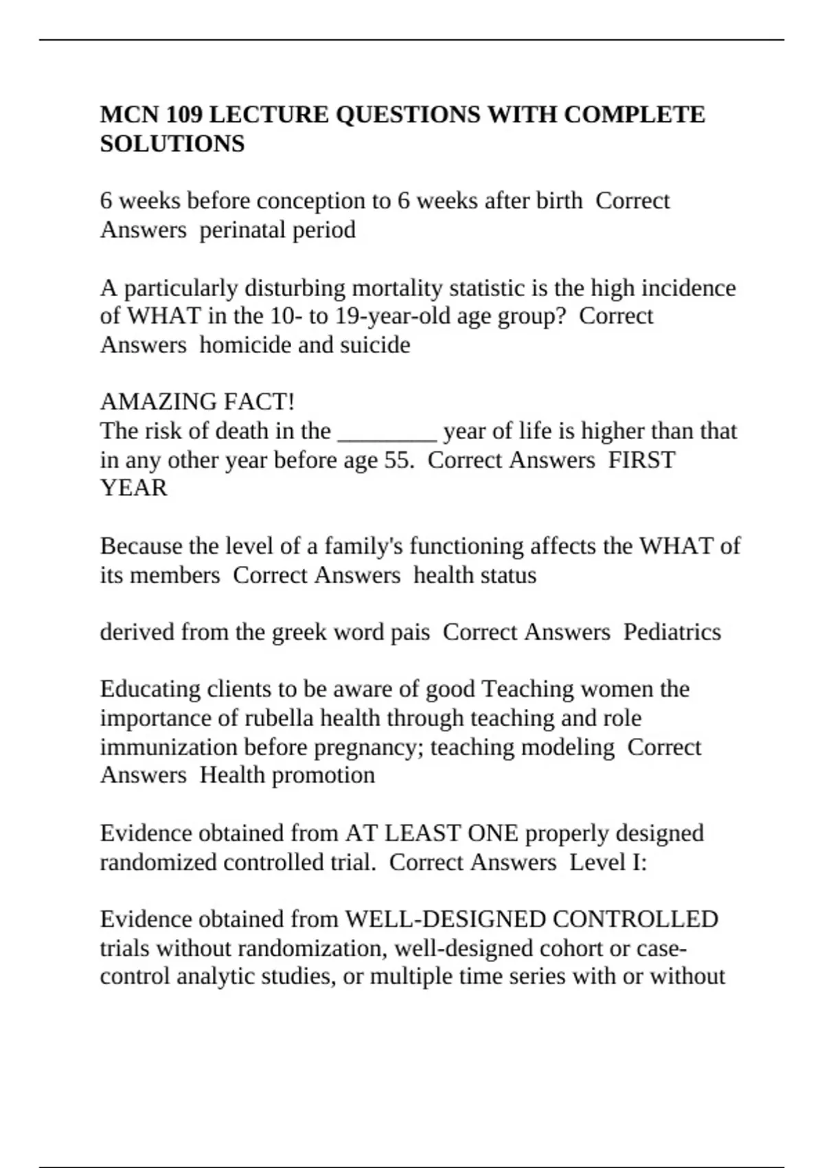 evidence. Correct Answers LEVEL II
