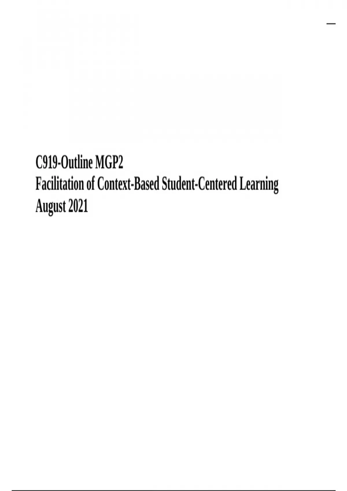 Facilitation of Context-Based Student-Centered Learning: Course Outline