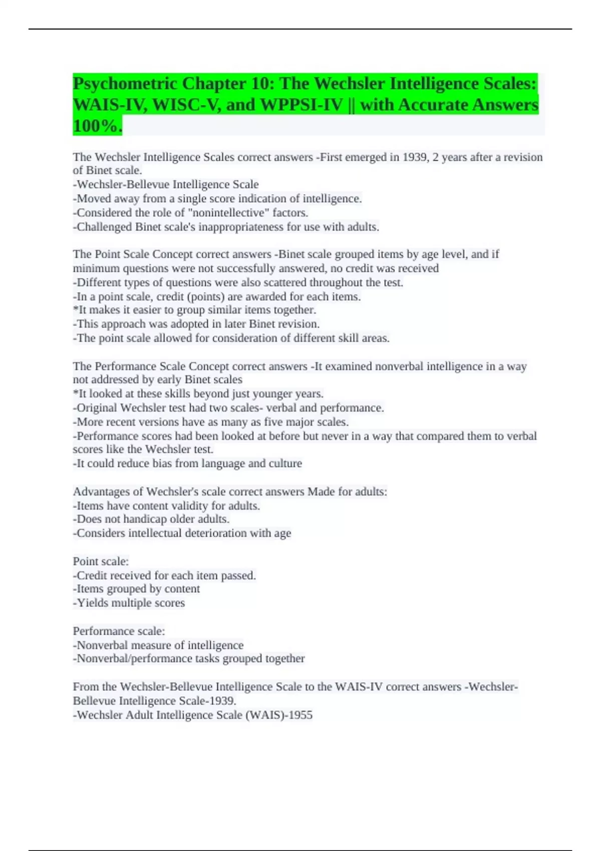 WAIS-IV, WISC-V, and WPPSI-IV || with Accurate Answers