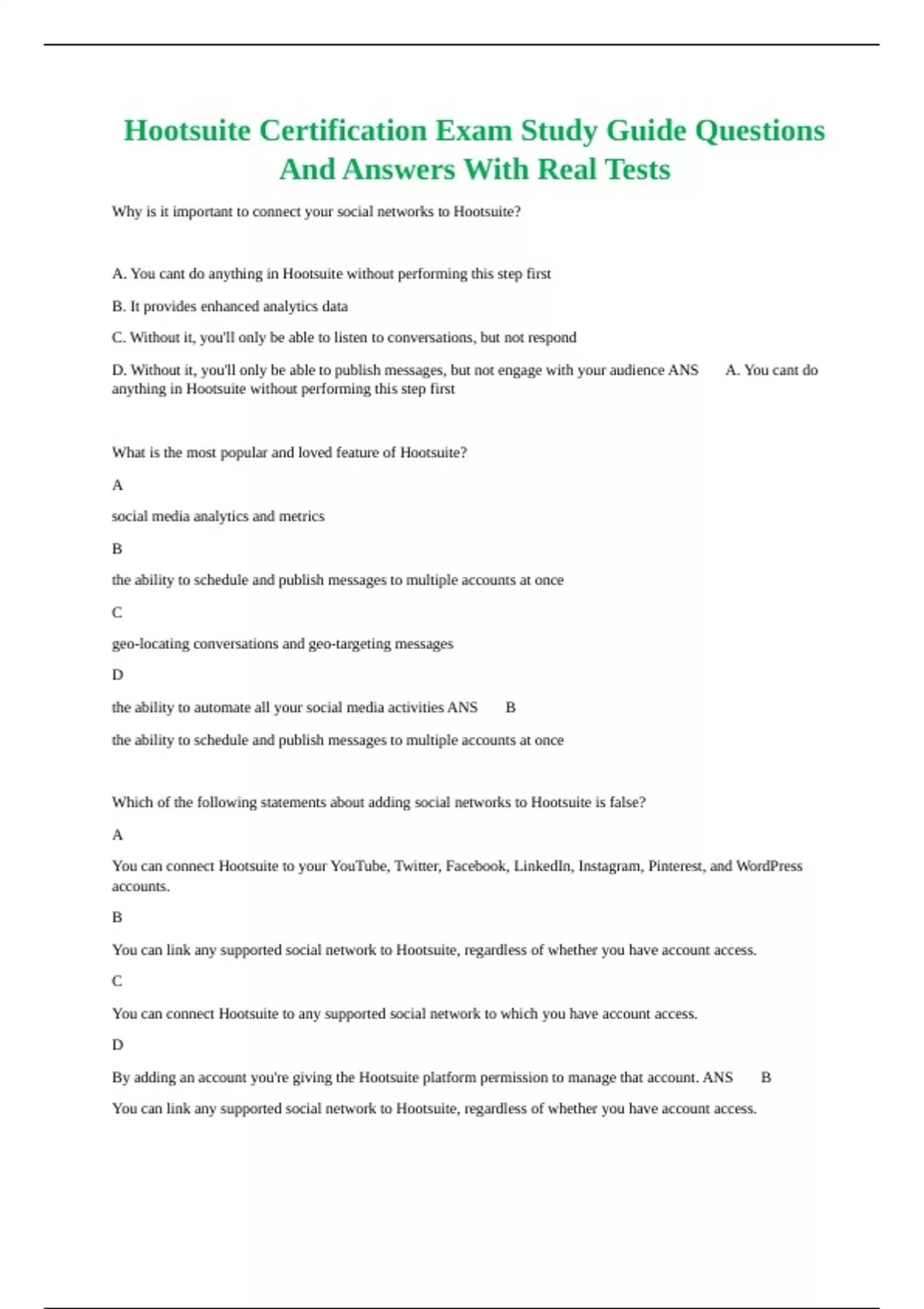 By adding an account you're giving the Hootsuite platform permission to manage that account. ANS ✅ B