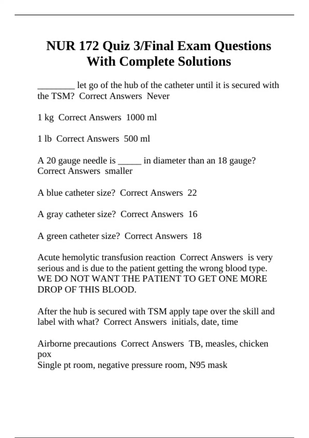 Acute hemolytic transfusion reaction Correct Answers is very