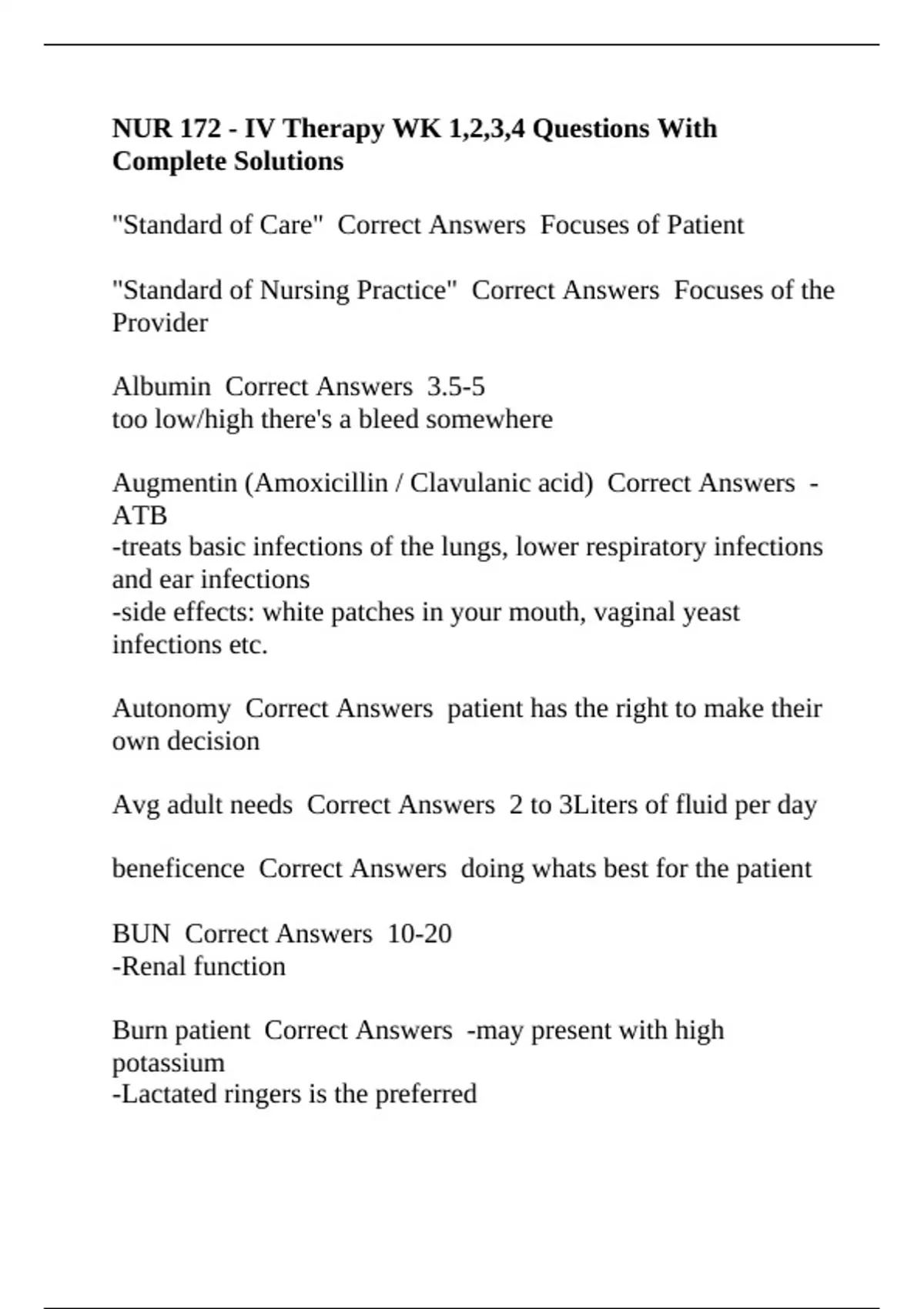 Augmentin (Amoxicillin / Clavulanic acid) Correct Answers -