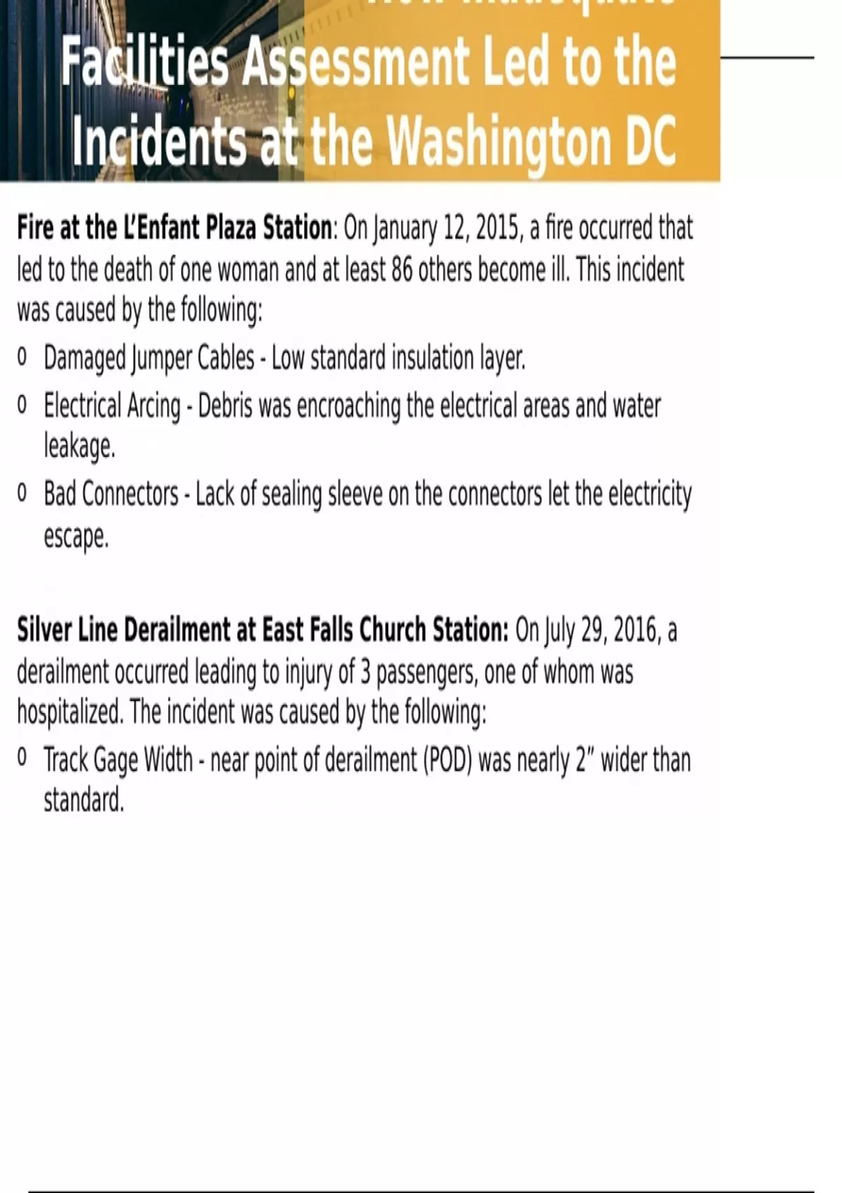Presentation on how inadequate facilities led to an accident at the Washington DC Metro.