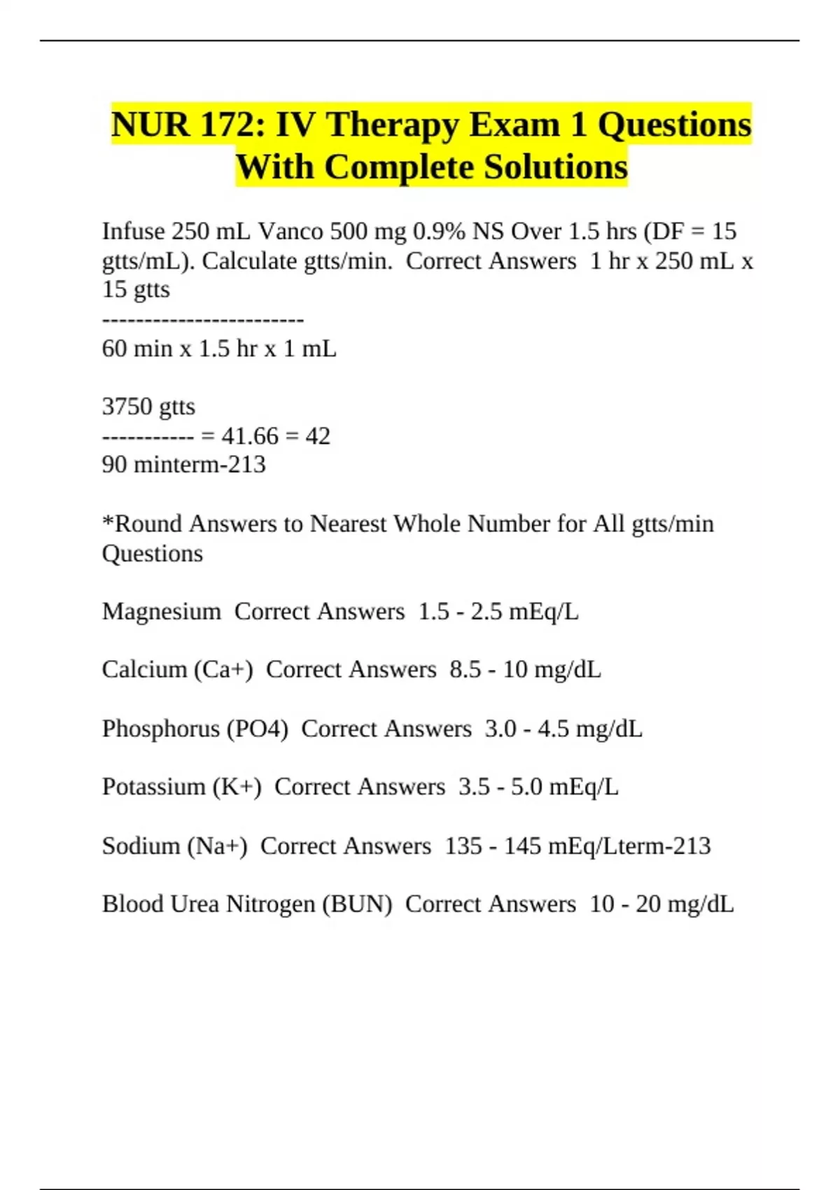 Sodium (Na+) Correct Answers 135 - 145 mEq/Lterm-213