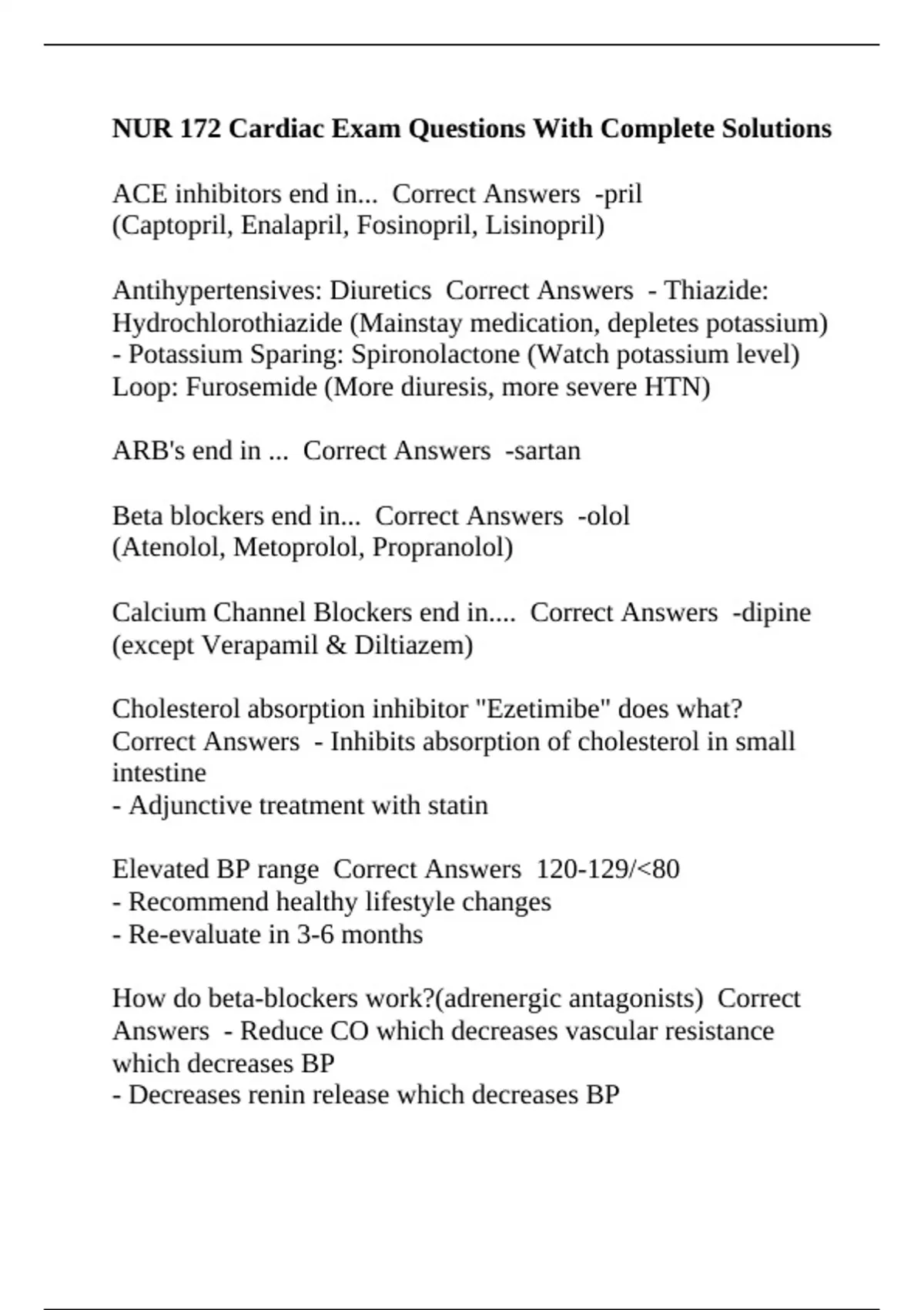 Beta blockers end in... Correct Answers -olol