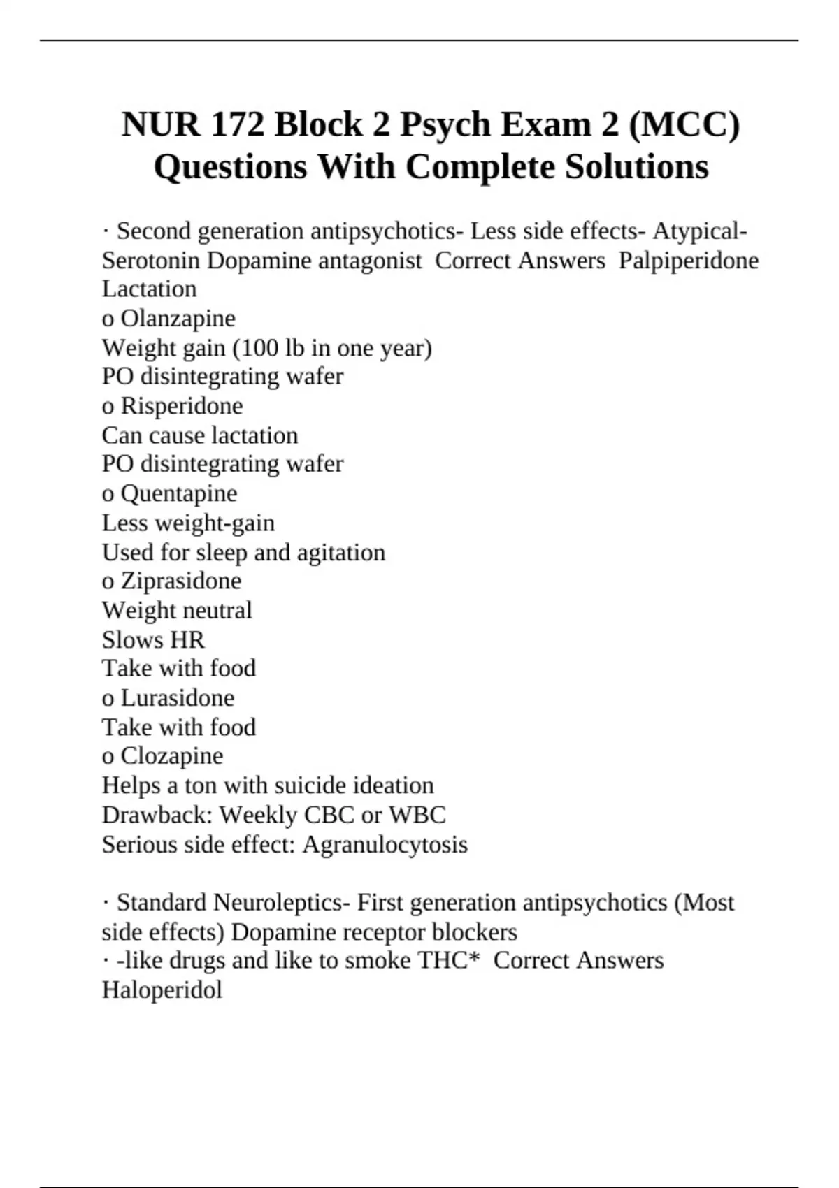 · Standard Neuroleptics- First generation antipsychotics (Most
