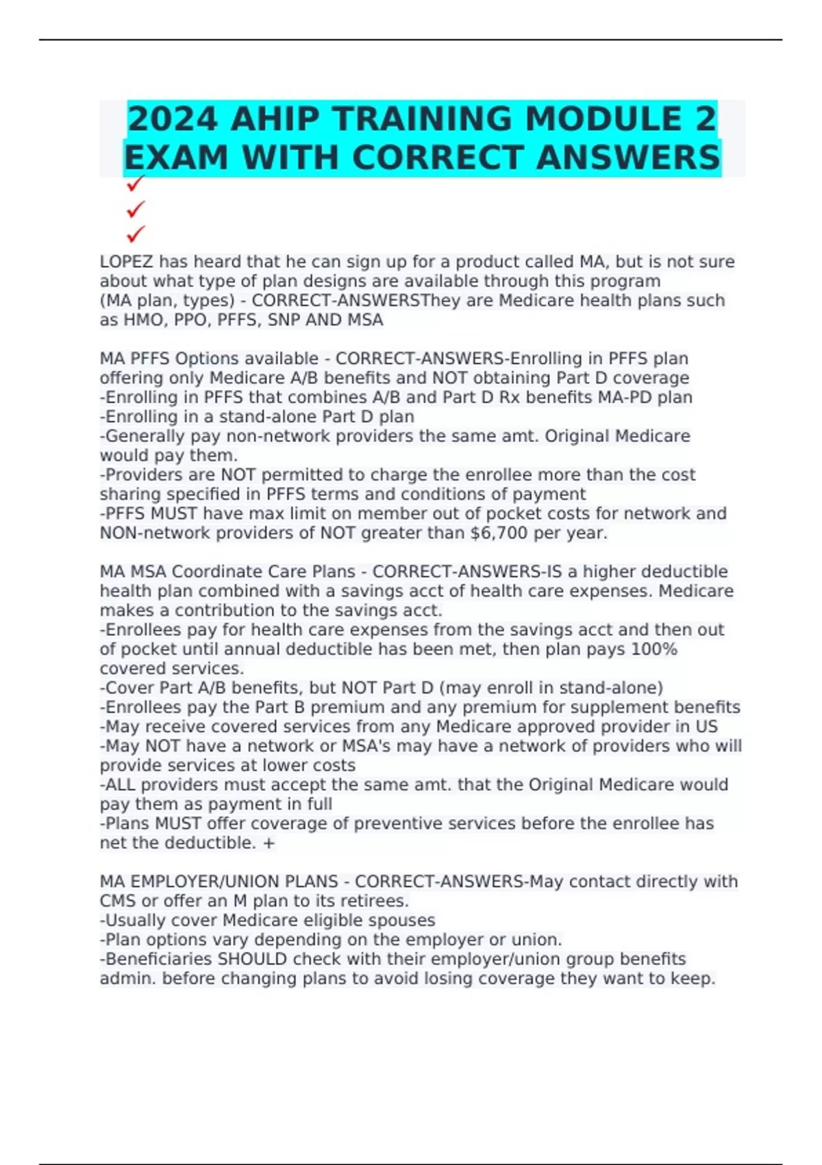 MA MSA Coordinate Care Plans - CORRECT-ANSWERS-IS a higher deductible