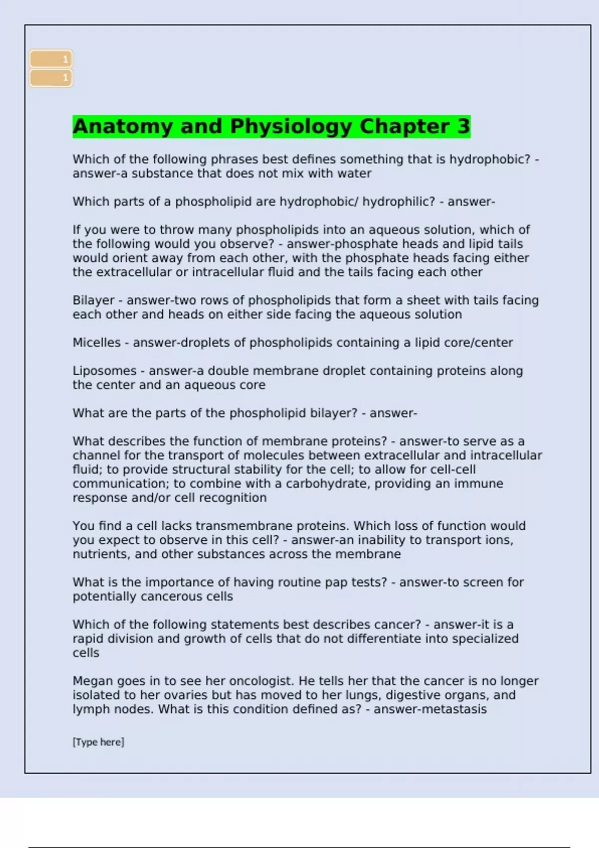 Anatomy and Physiology Chapter 3