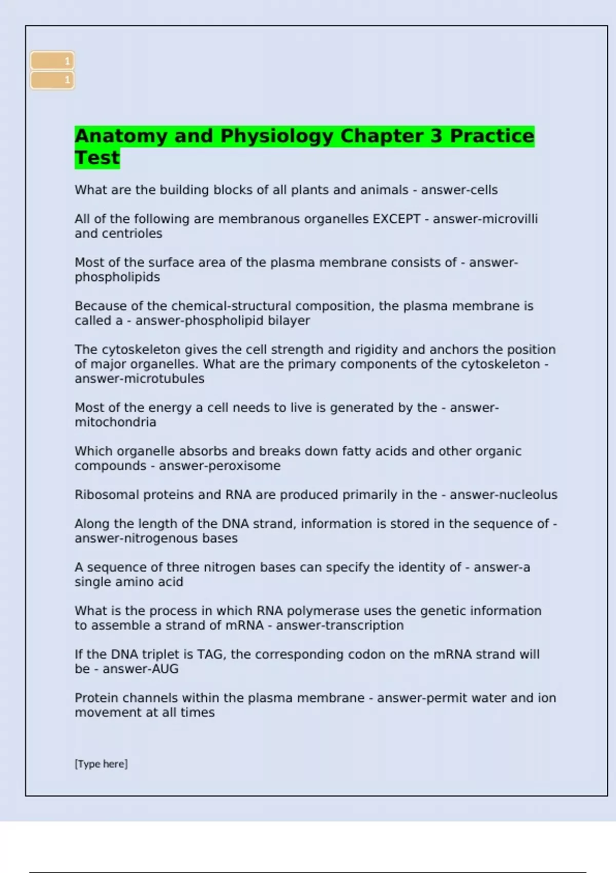 Anatomy and Physiology Chapter 3 Practice