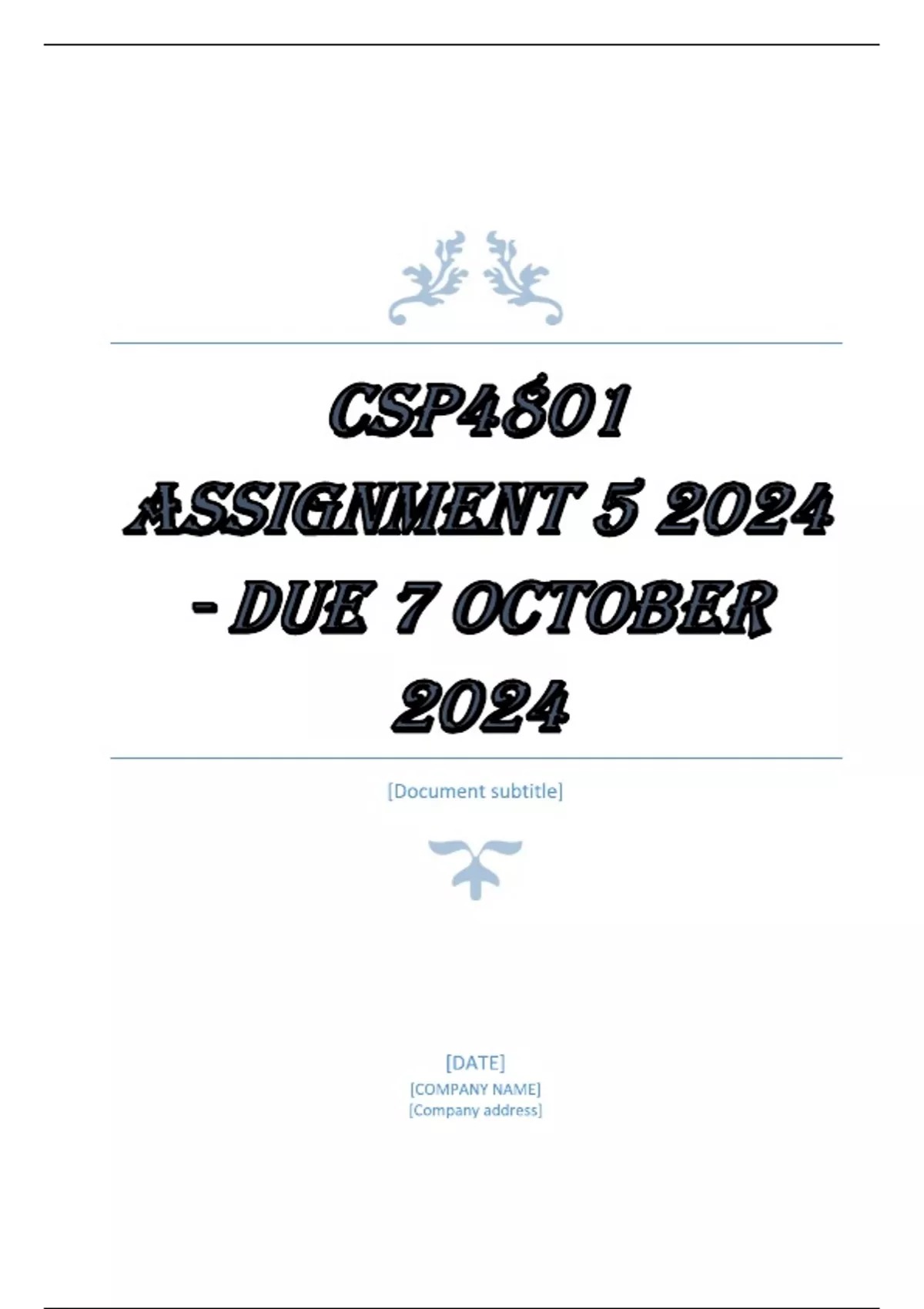 CSP4801 Assignment 5 (COMPLETE ANSWERS) 2024