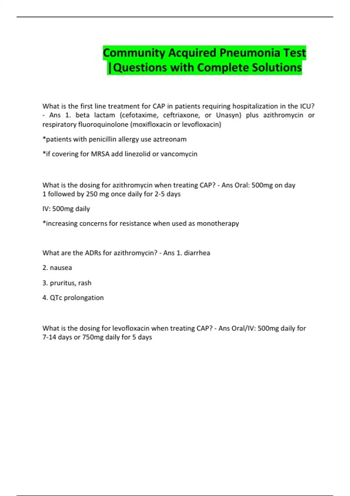 What is the dosing for azithromycin when treating CAP? - Ans Oral: 500mg on day