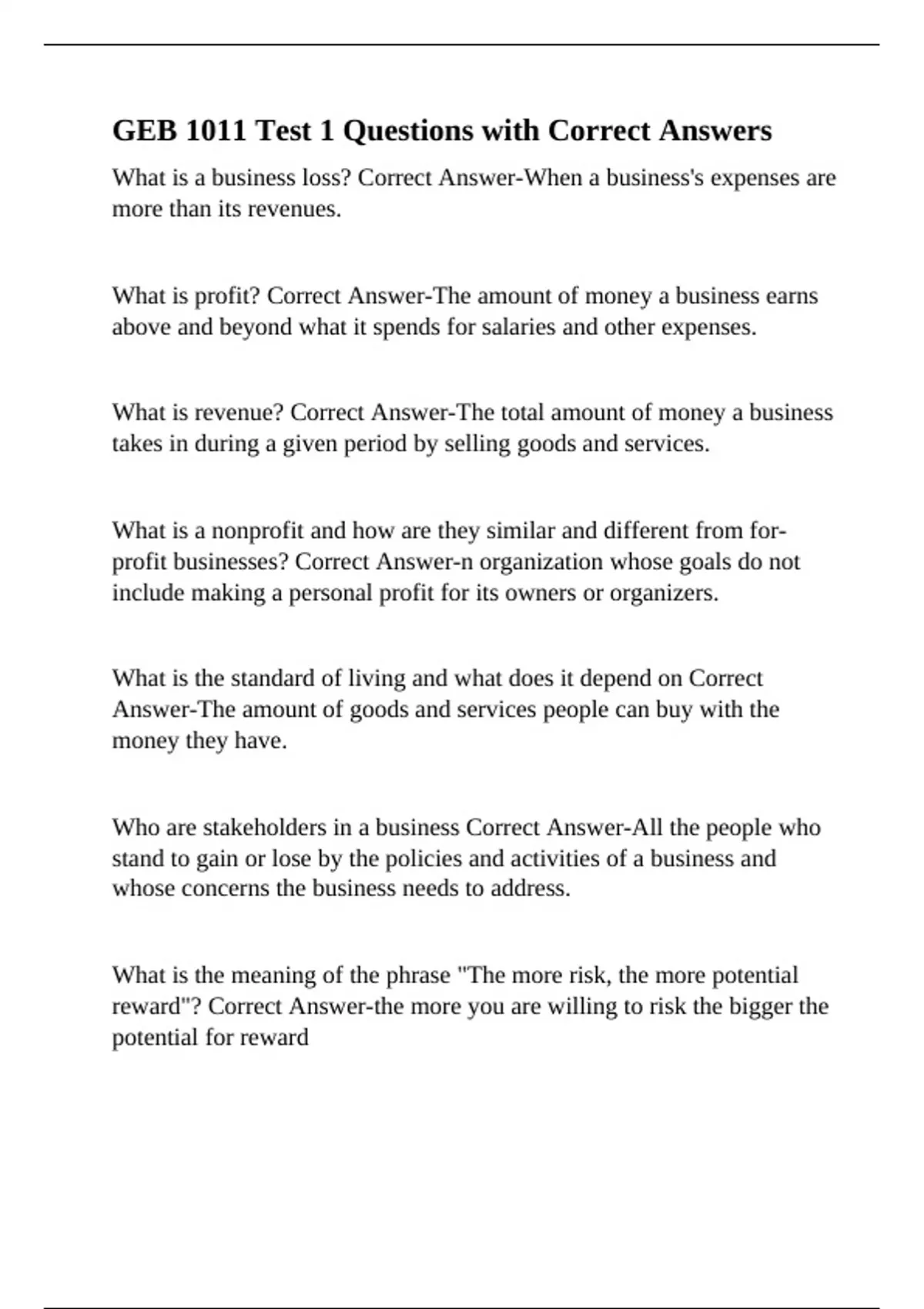profit businesses? Correct Answer-n organization whose goals do not
