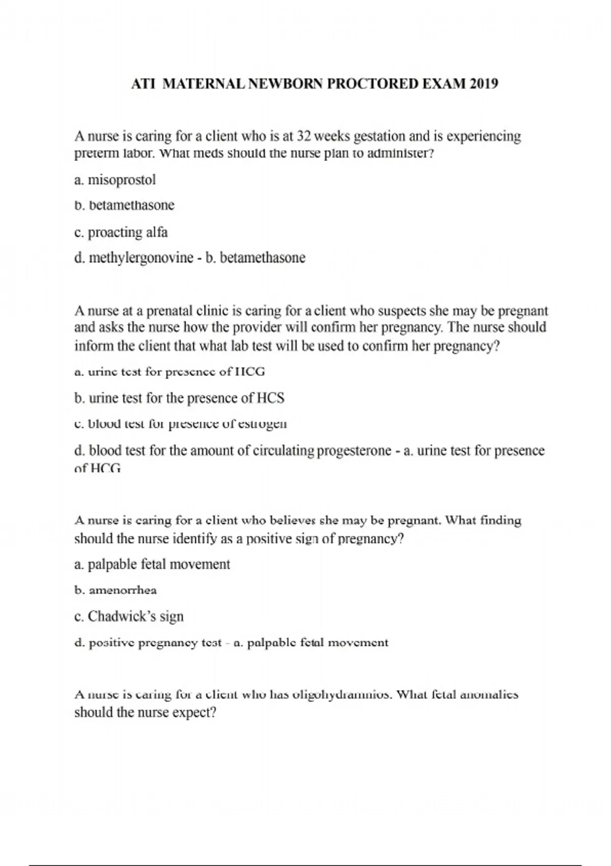 ATI MATERNAL NEWBORN PROCTORED EXAM 2019