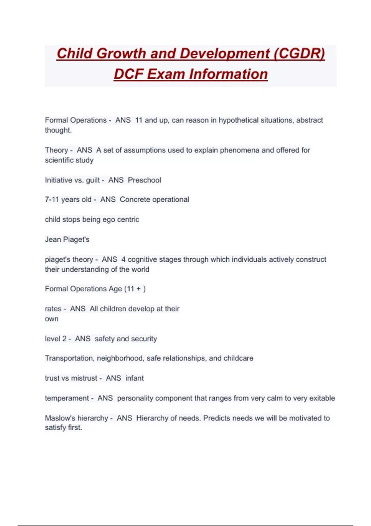 Formal Operations - ANS 11 and up, can reason in hypothetical situations, abstract