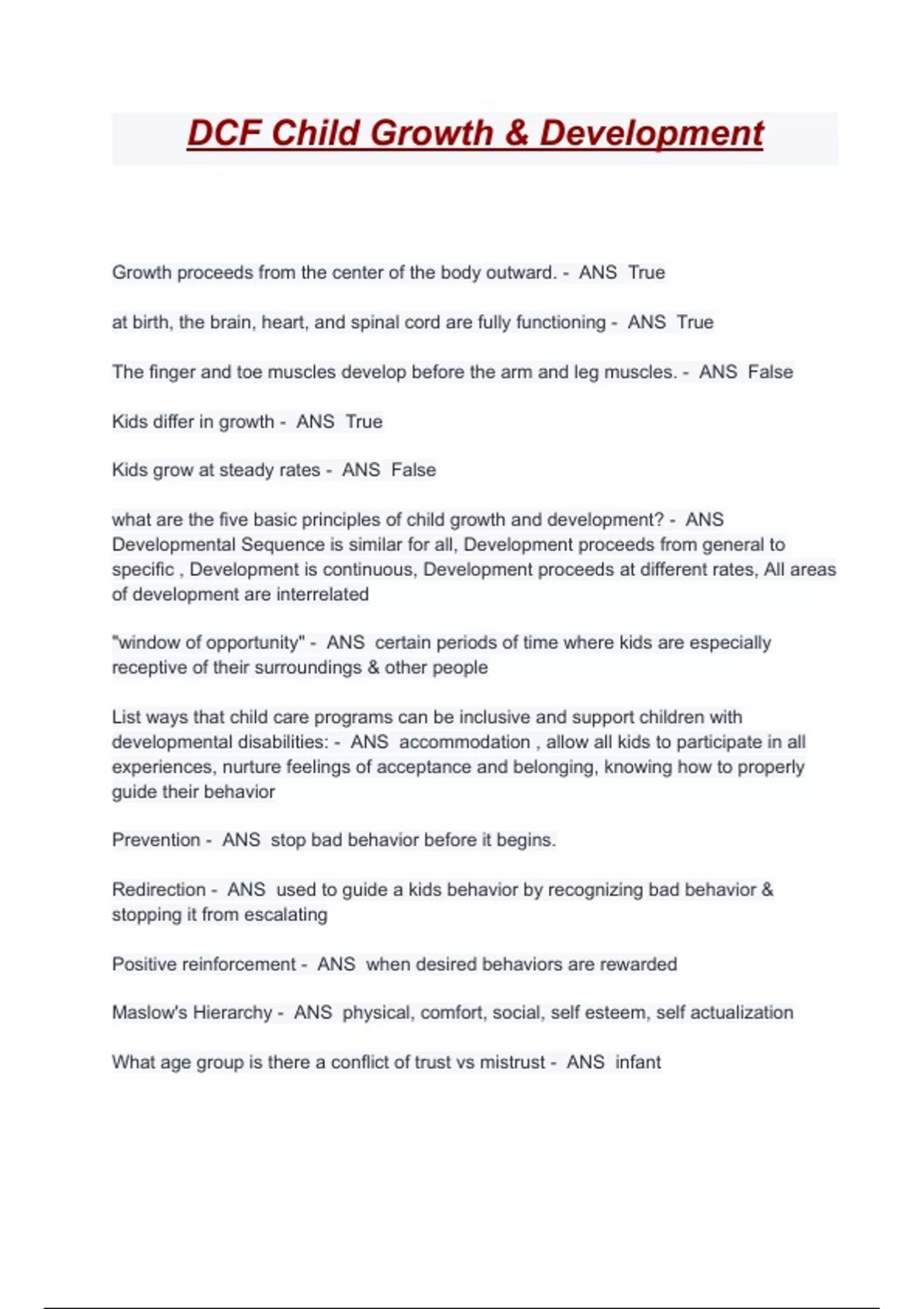 what are the five basic principles of child growth and development? - ANS