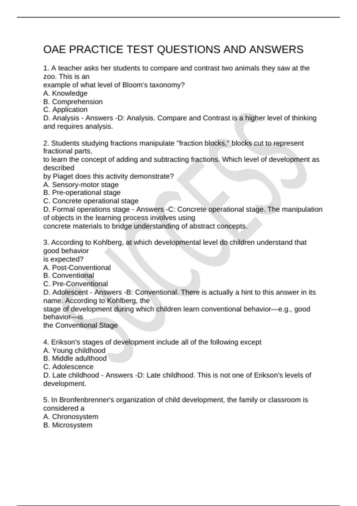 OAE PRACTICE TEST QUESTIONS AND ANSWERS