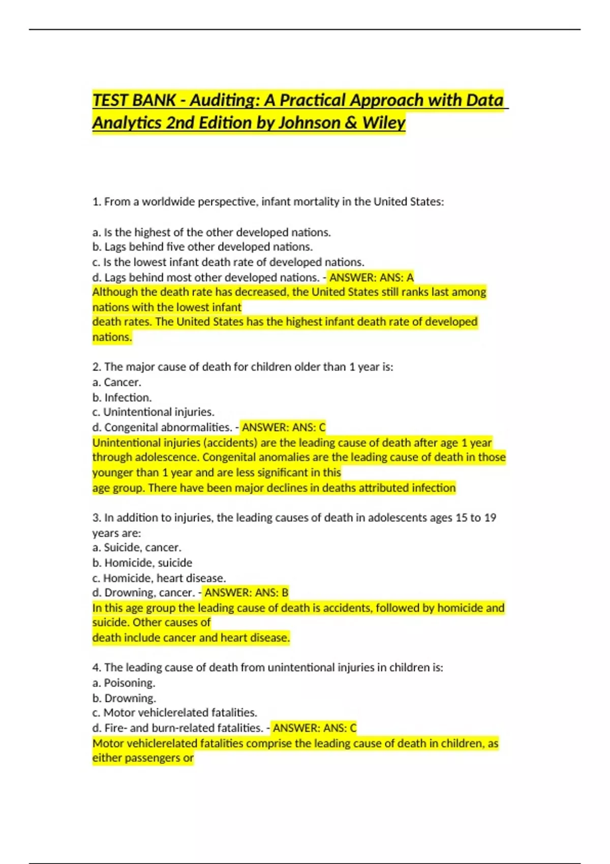 TEST BANK - Auditing: A Practical Approach with Data
