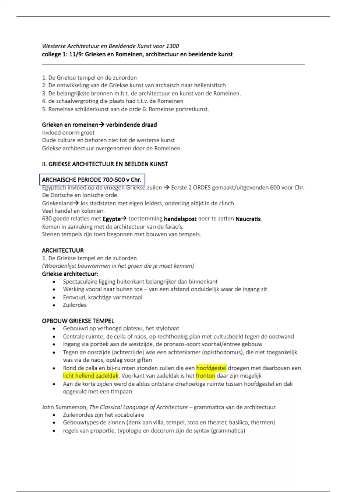 college 1: 11/9: Grieken en Romeinen, architectuur en beeldende kunst
