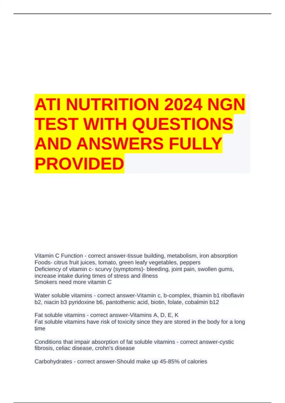 Vitamin D deficiency - correct answer-Helps with absorption of calcium and