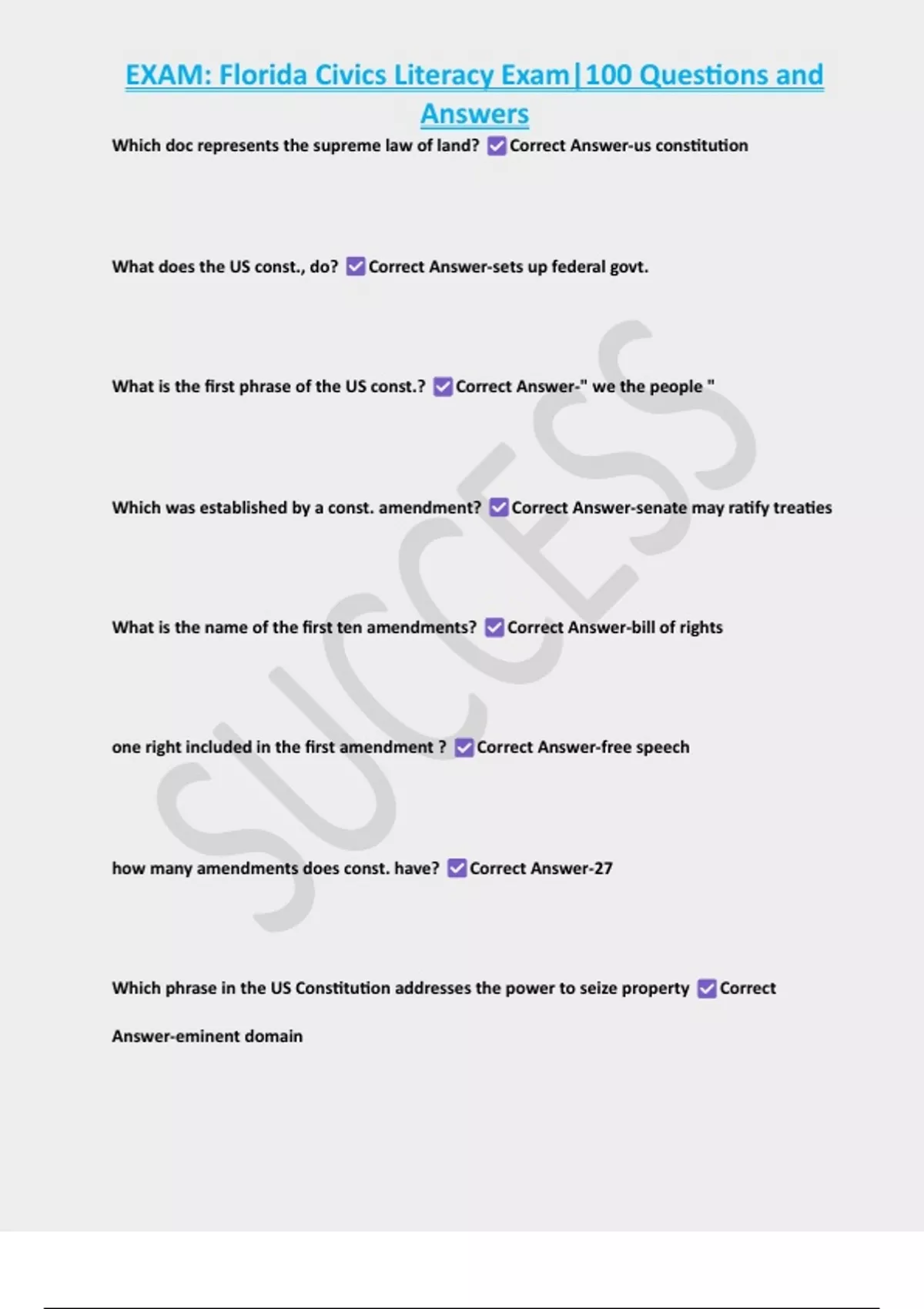 , EXAM: Florida Civics Literacy Exam|100 Questions and