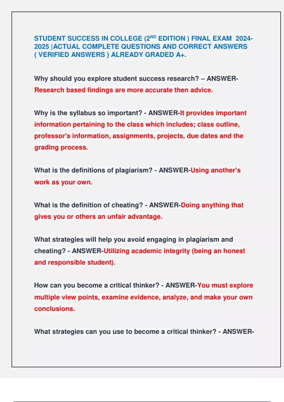 Why is the syllabus so important? - ANSWER-It provides important
