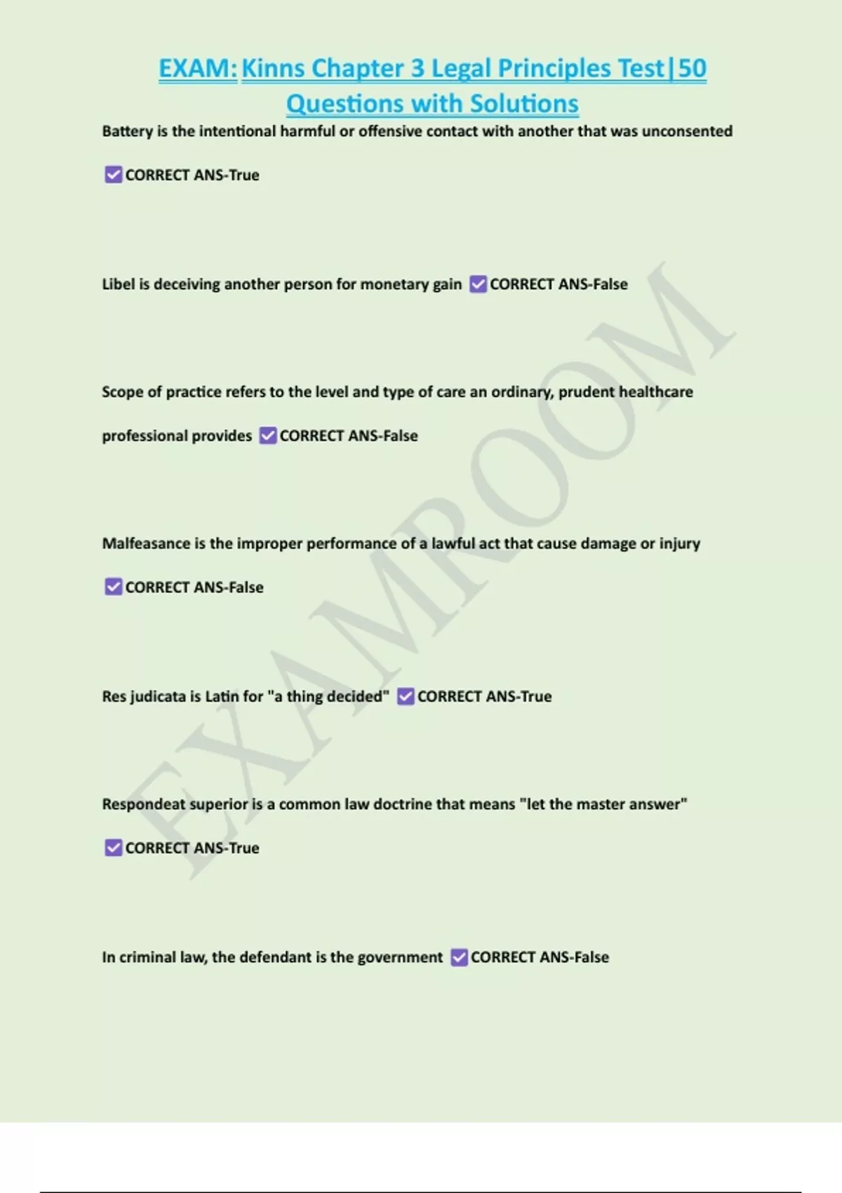 , EXAM: Kinns Chapter 3 Legal Principles Test|50