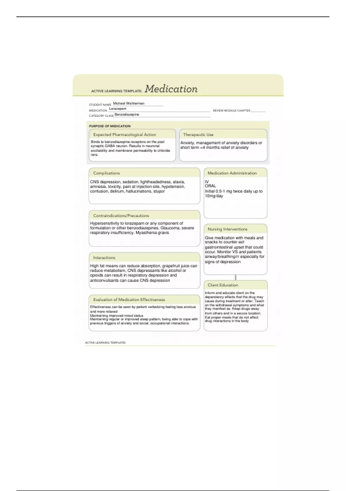 formulation or other benzodiazepines. Glaucoma, severe Nursing Interventions