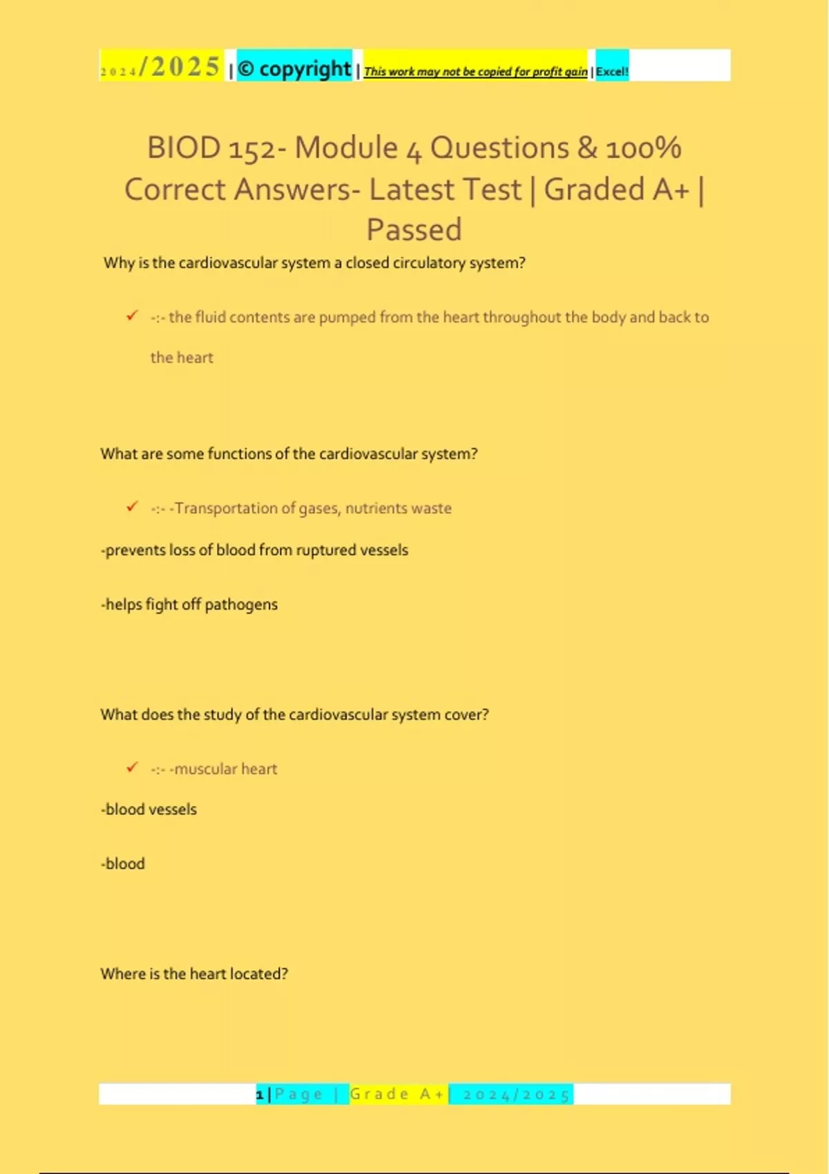, 2024 /2025 | © copyright | This work may not be copied for profit gain | Excel!
