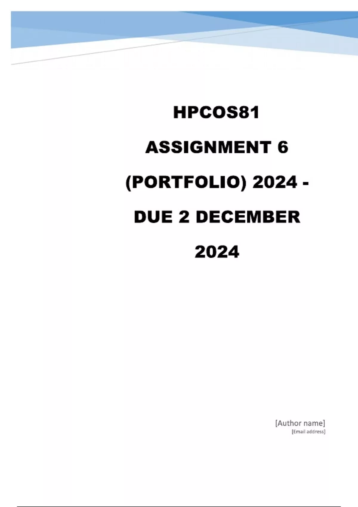 hpcos81 assignment 6 portfolio 2024