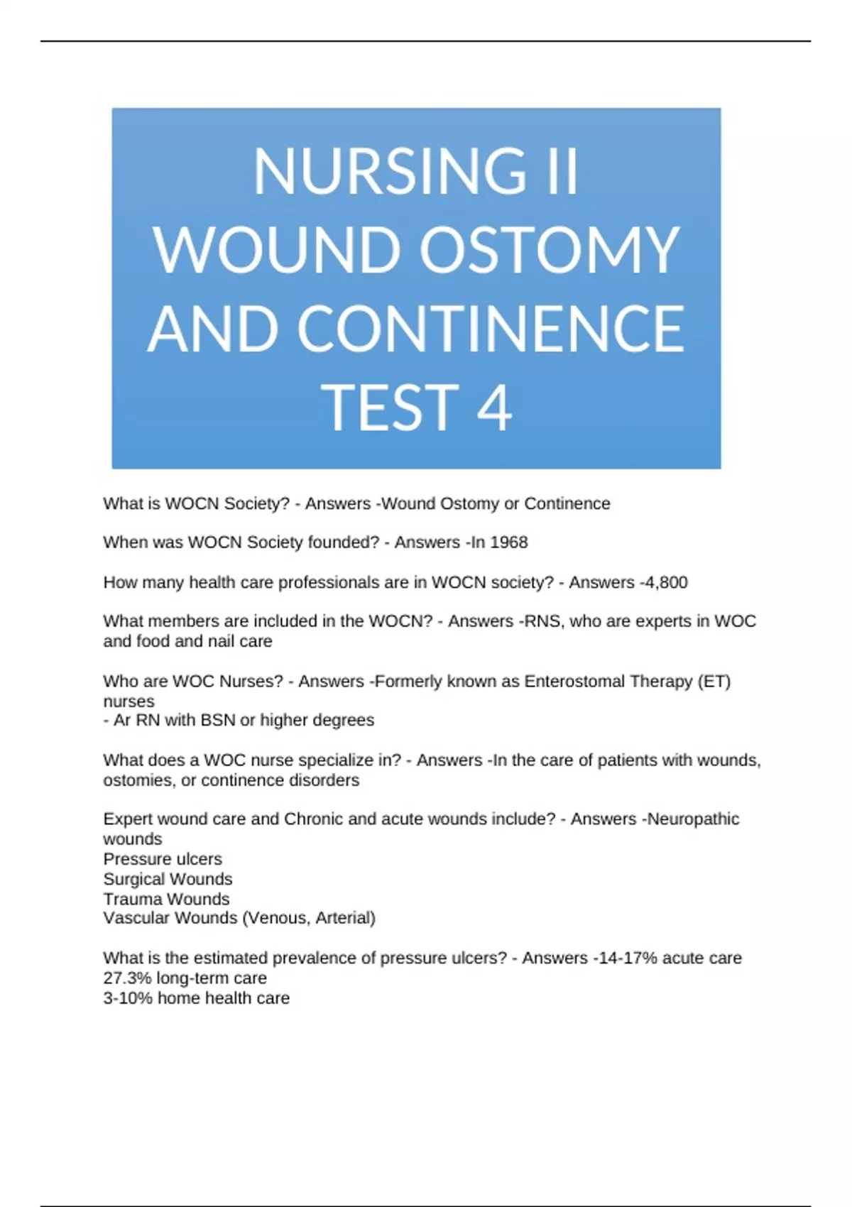 What is WOCN Society? - Answers -Wound Ostomy or Continence