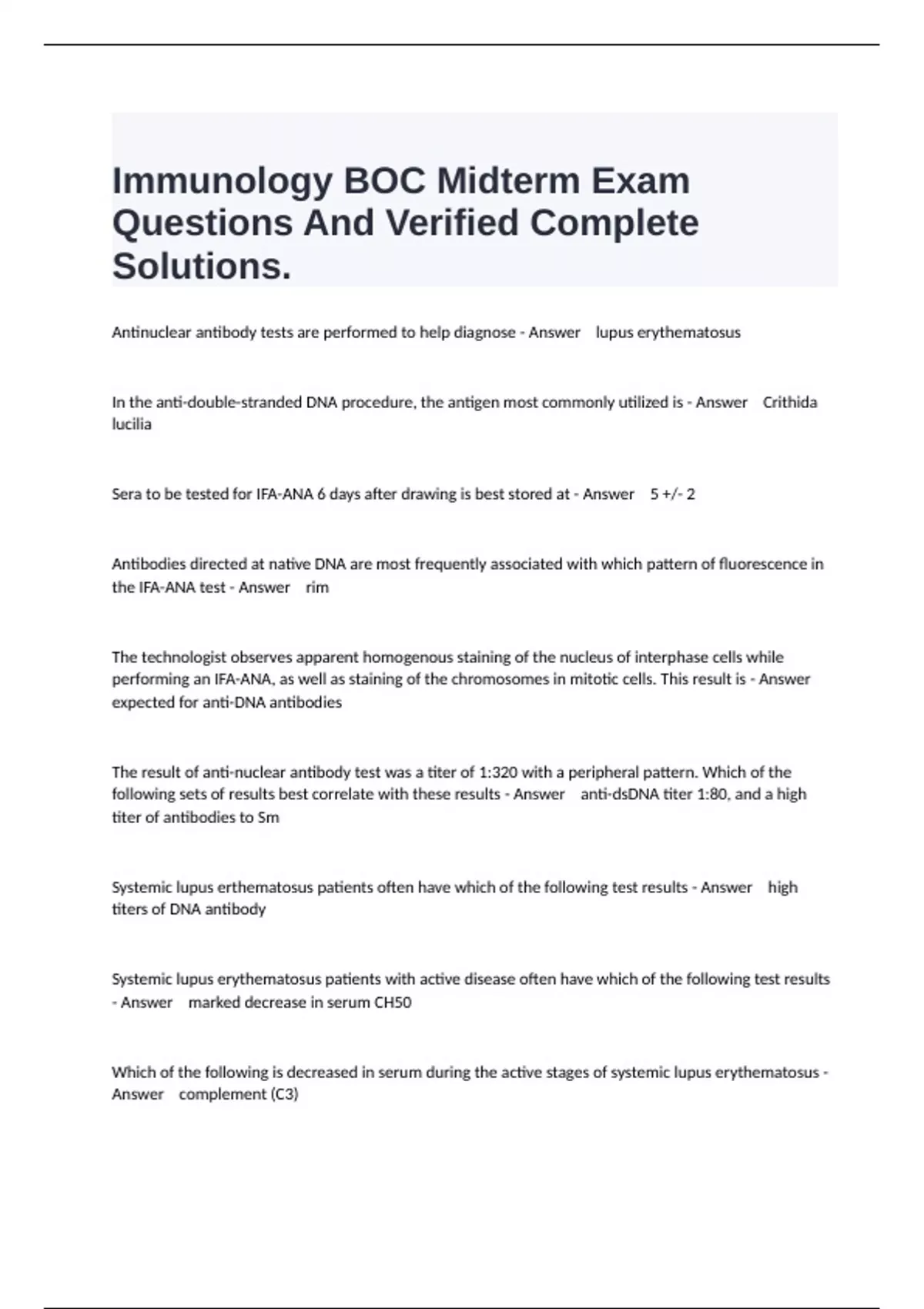 Immunology BOC Midterm Exam Questions And Verified Complete Solutions.