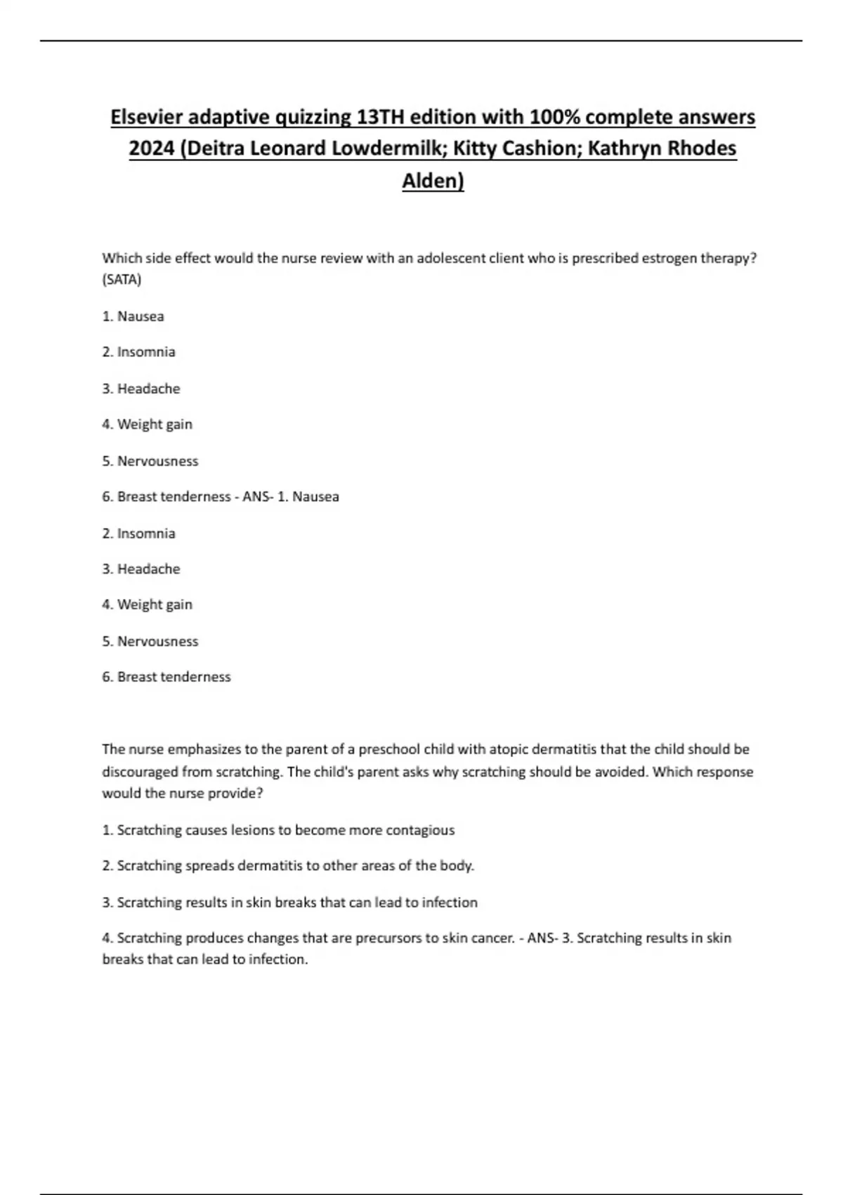 4. Scratching produces changes that are precursors to skin cancer. - ANS- 3. Scratching results in skin