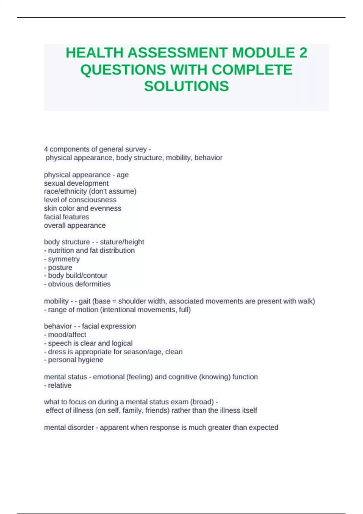 HEALTH ASSESSMENT MODULE 2 QUESTIONS WITH COMPLETE SOLUTIONS