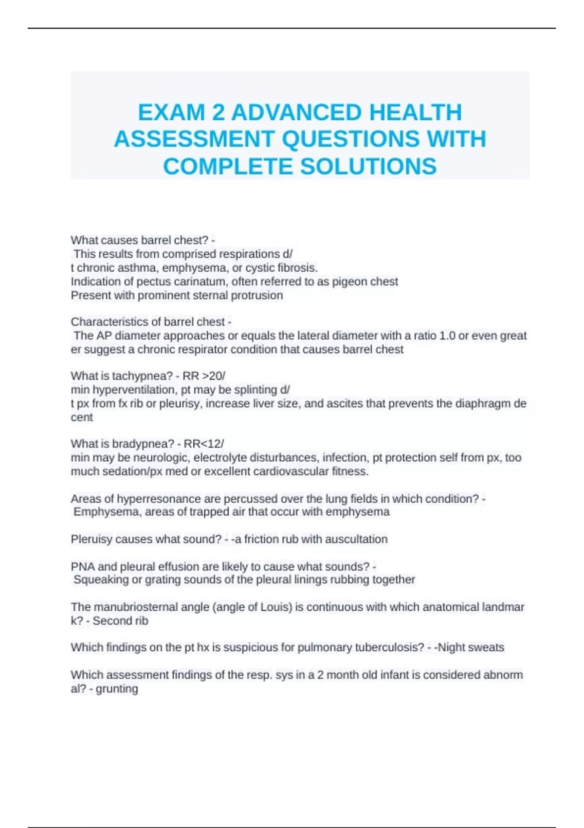EXAM 2 ADVANCED HEALTH ASSESSMENT QUESTIONS WITH COMPLETE SOLUTIONS