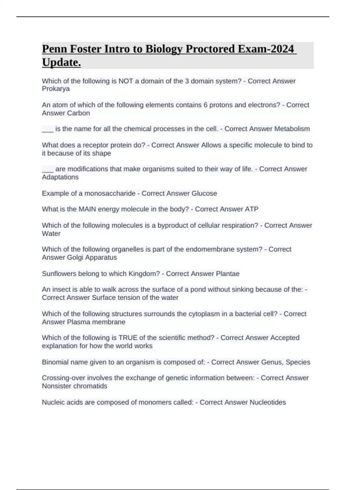 Nucleic acids are composed of monomers called: - Correct Answer Nucleotides