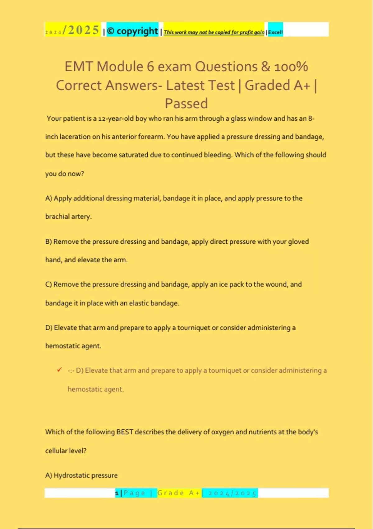 EMT Module 6 exam Questions & 100%