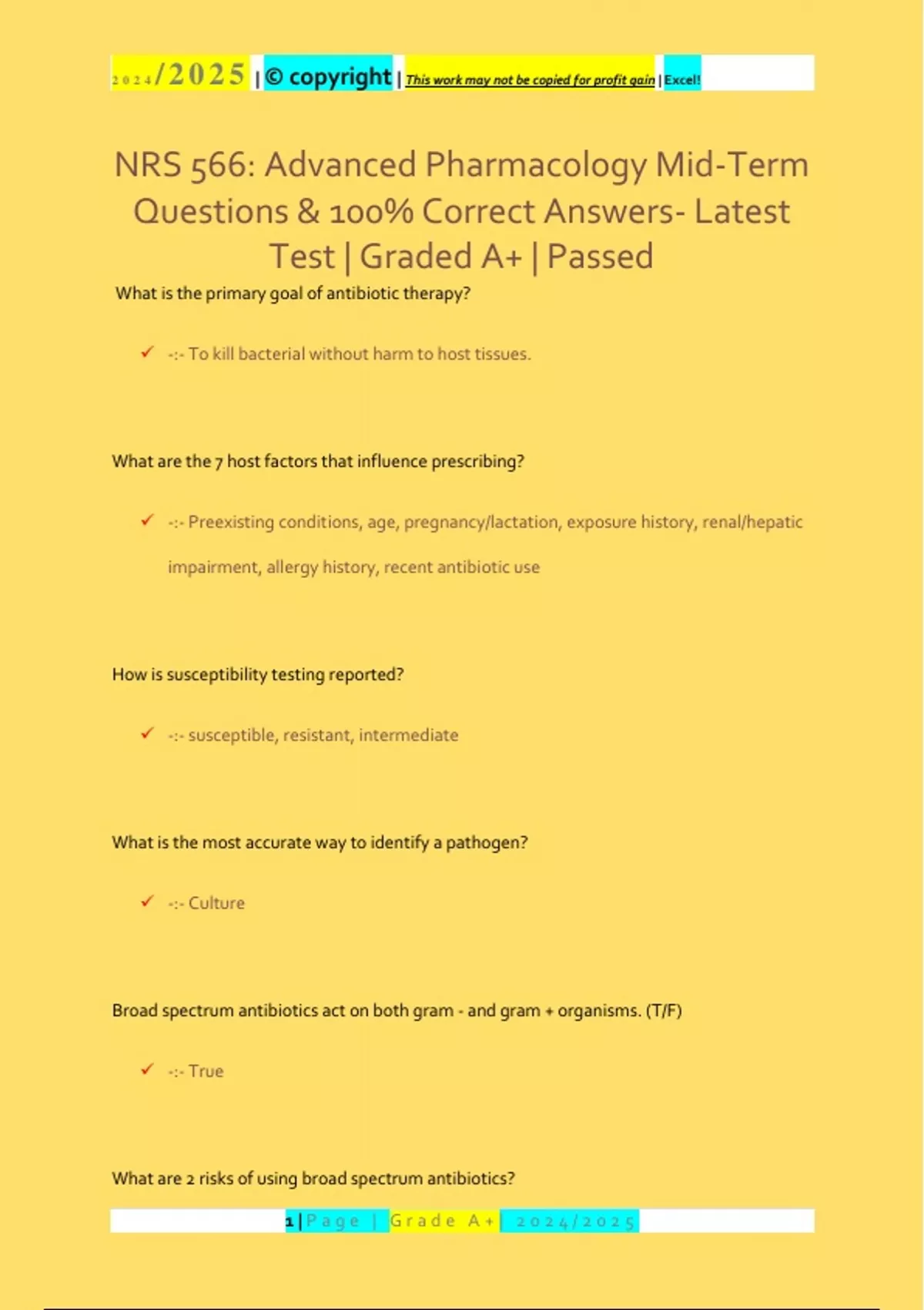 , 2024 /2025 | © copyright | This work may not be copied for profit gain | Excel!