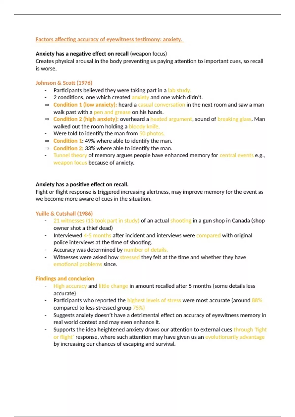 - Suggests anxiety doesn’t have a detrimental effect on accuracy of eyewitness memory in