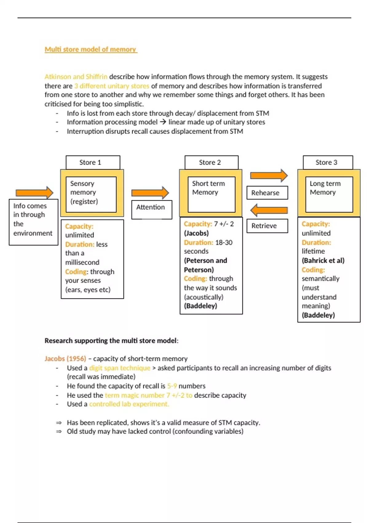 multi store model of memory notes in topic of memory aqa a level psychology